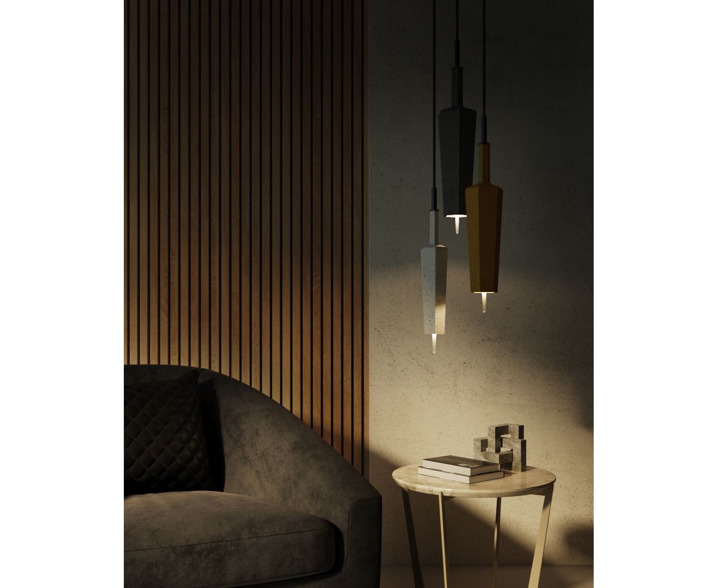 Шестиугольная форма - определяющий элемент Sop. Использование этой геометрической фигуры позволяет зрителю иначе воспринимать дизайн в зависимости от ракурса наблюдения за лампой. Теплый и мягкий свет излучается светодиодом, расположенным в нижнем конце конструкции. Пестик элегантной формы становится не только функциональной, но и декоративной деталью.