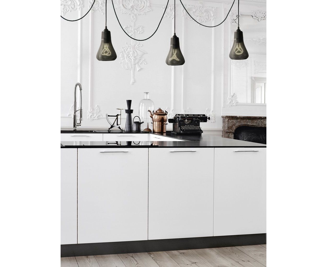 Его мощная простота мягких, извилистых форм прекрасно дополняет изогнутые силуэты ламп. Проколотые стороны также позволяют использовать уникальный силуэт лампочки, сохраняя при этом полную яркость света, проецируемого на поверхности внизу.