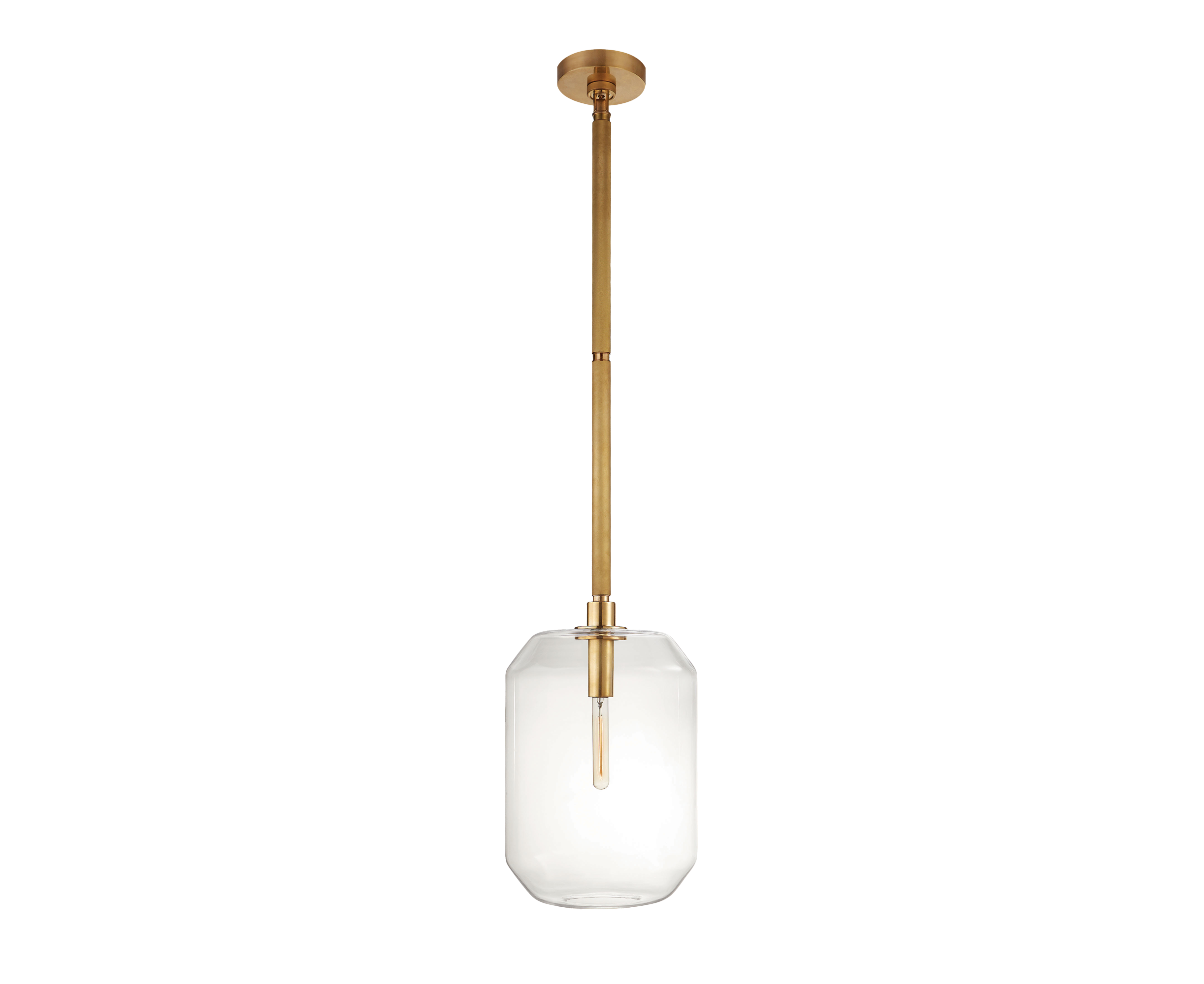 Вдохновленный утилитарными текстурами промышленного дизайна, подвеска Barrett имеет накатанный ромбовидный рисунок, тисненный в цельную латунную ножку. Мягкие геометрические линии образуют современный стеклянный рассеиватель и добавляют современный штрих этому светильнику.