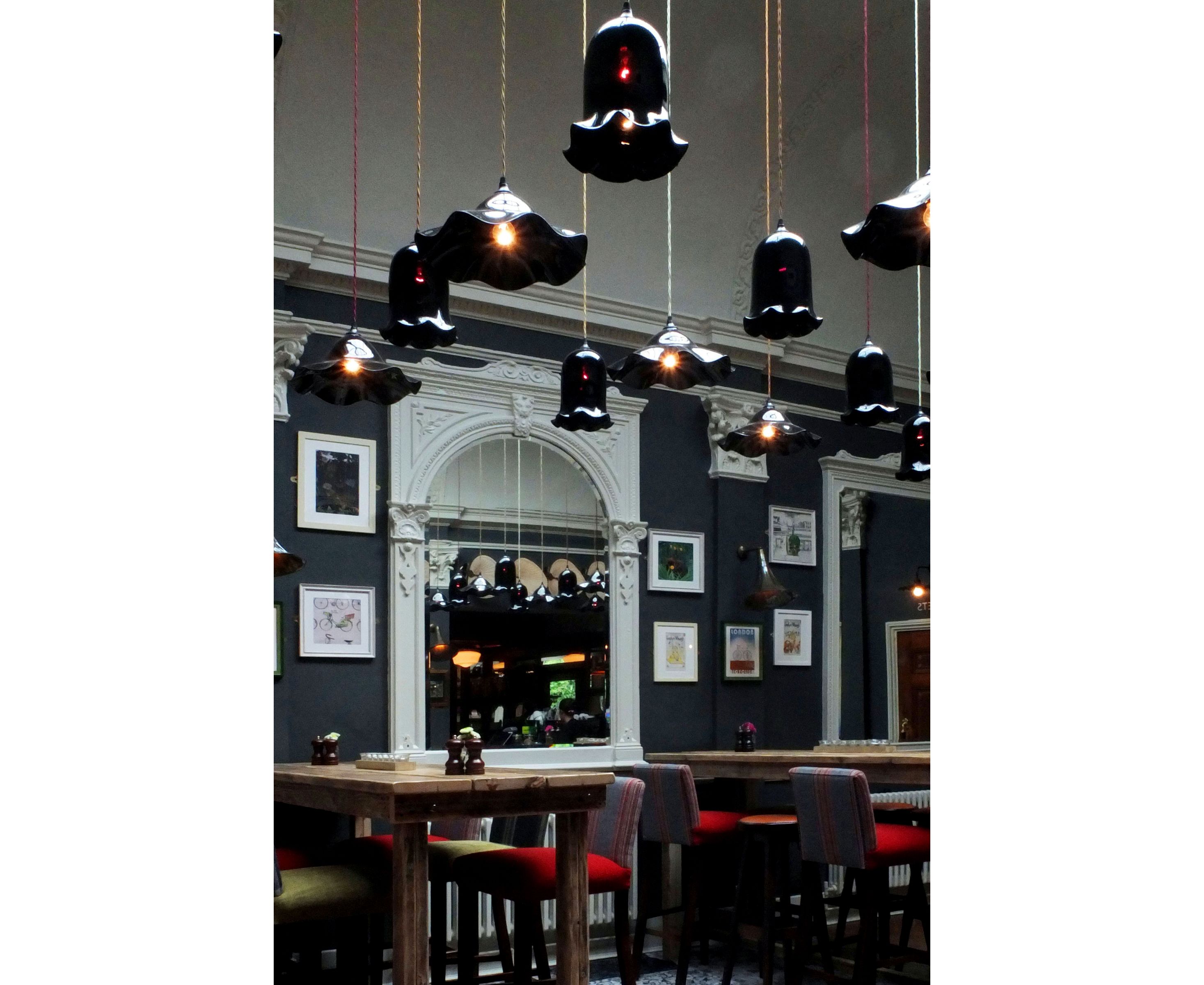 Этот богатый ассортимент в черном стекле изготовлен с использованием традиционных технологий свободного выдувания для создания элегантных форм жидкости с блестящим, богатым, отражающим качеством. Черное стекло заслоняет лампу, позволяя сиянию нити накалиться.