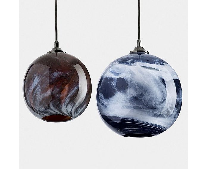 Коллекция Mineral Pendants была создана в ответ на растущую тенденцию в отношении органических материалов. Мраморная отделка была большой новостью уже пару лет. Жидкая природа стекла делает его идеальным материалом для воссоздания тонких вен и сложных узоров, свойств, которые делают эти драгоценные камни столь желанными. Используя смесь твердых и порошковых пигментов, фабрика может изготовить ряд замечательных цветов от красных ржавых до зеленых селадонов. Этот спонтанный процесс делает каждый светильник действительно уникальным.