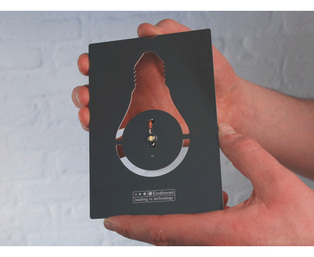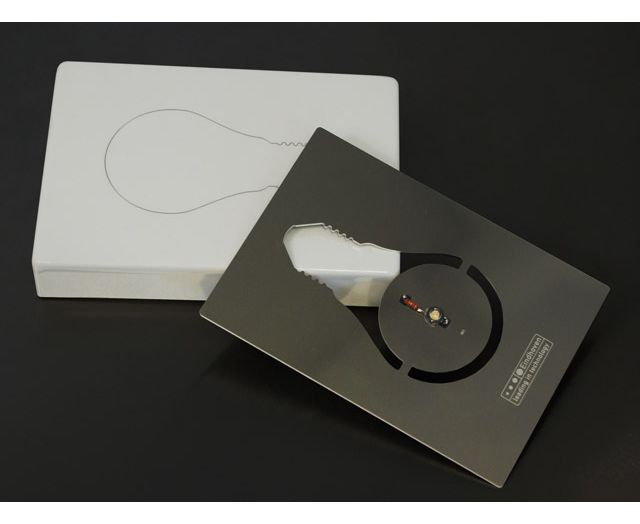 Этот сложный рекламный подарок знакомит публику с возможностями нового поколения силовых светодиодов; они маленькие, энергоэффективные и практически неразрушимые. Как объект дизайна в традиционном формате почтовых открыток, он может быть отправлен обычной почтой вашей семье, друзьям и родственникам, где он за один раз превращается в осветительное устройство.