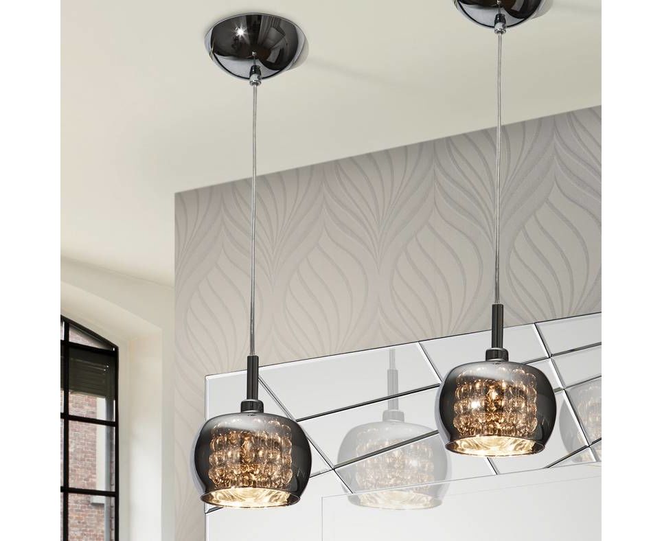 Подвесной светильник из стали с блестящим покрытием. Плафон из зеркального стекла, внутри нити бусин из стекла