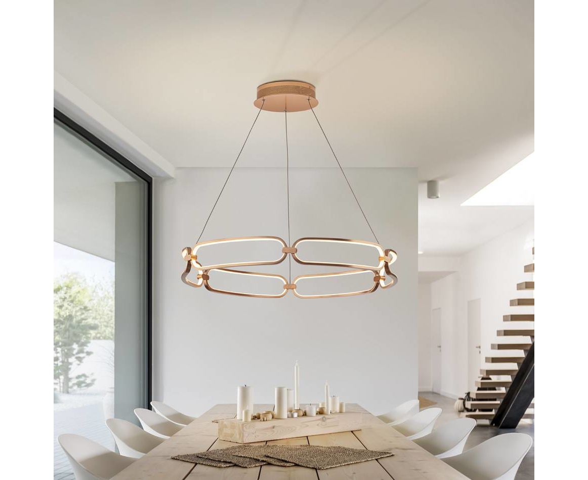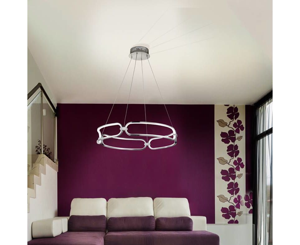 Подвесной светильник LED маленького размера, из алюминия с покрытием "хром". Силиконовые рассеиватели опалового цвета. С регулируемой высотой, 37W LED, 3330 Lm, 3000 K.