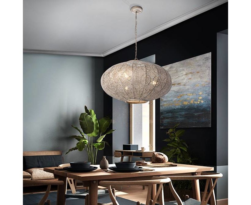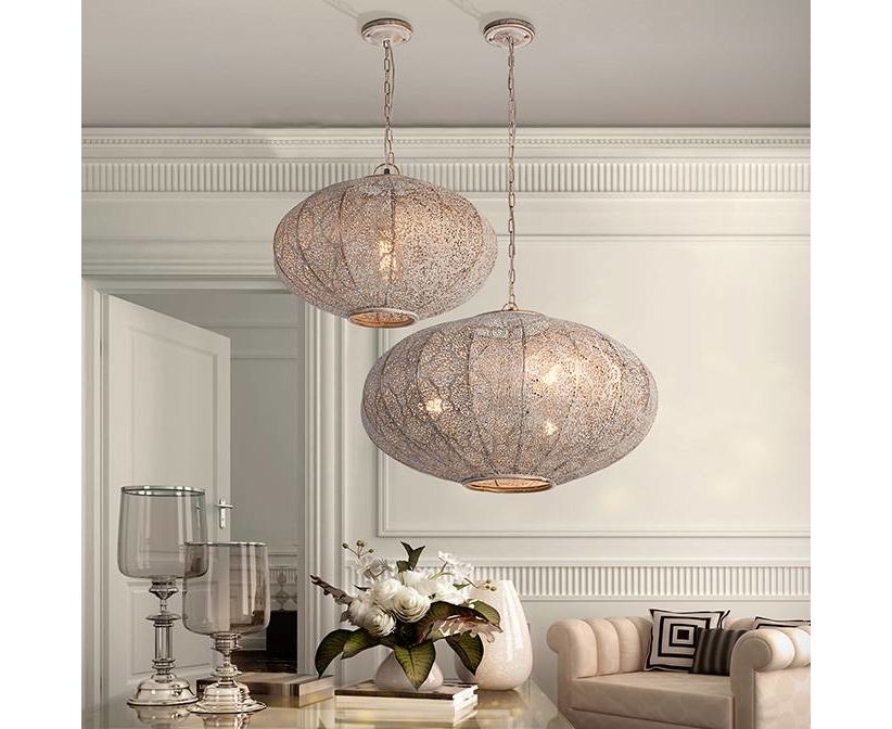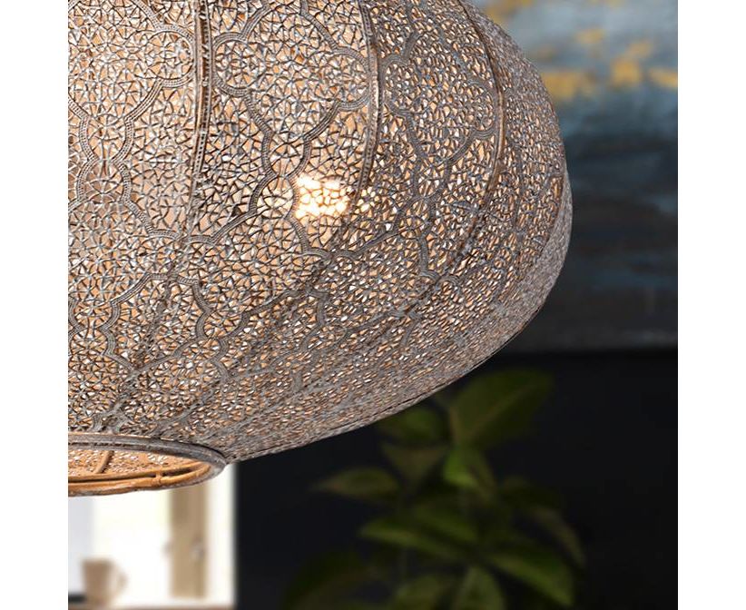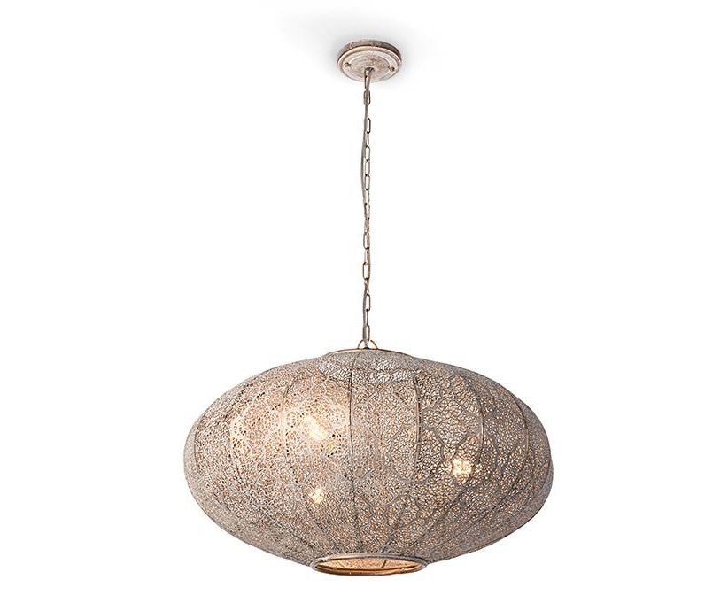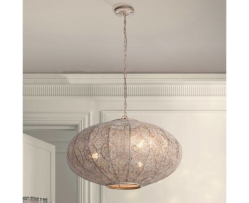 Подвесной светильник с 1 лампой из металла со штампованной резьбой, золотистое покрытие с белой патиной, с золотистыми элементами.