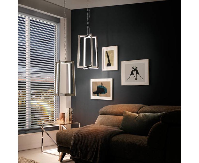 Подвесной светильник LED из полированной нержавеющей стали. Ленты LED под рассеивателями из белого поликарбоната.