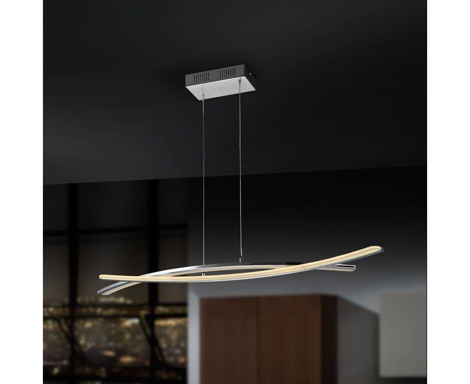 Светильник изготовлен из алюминия и металла, хромированная отделка. Регулируемая по высоте, со светодиодной подсветкой внутри и опаловыми акриловыми диффузорами.
