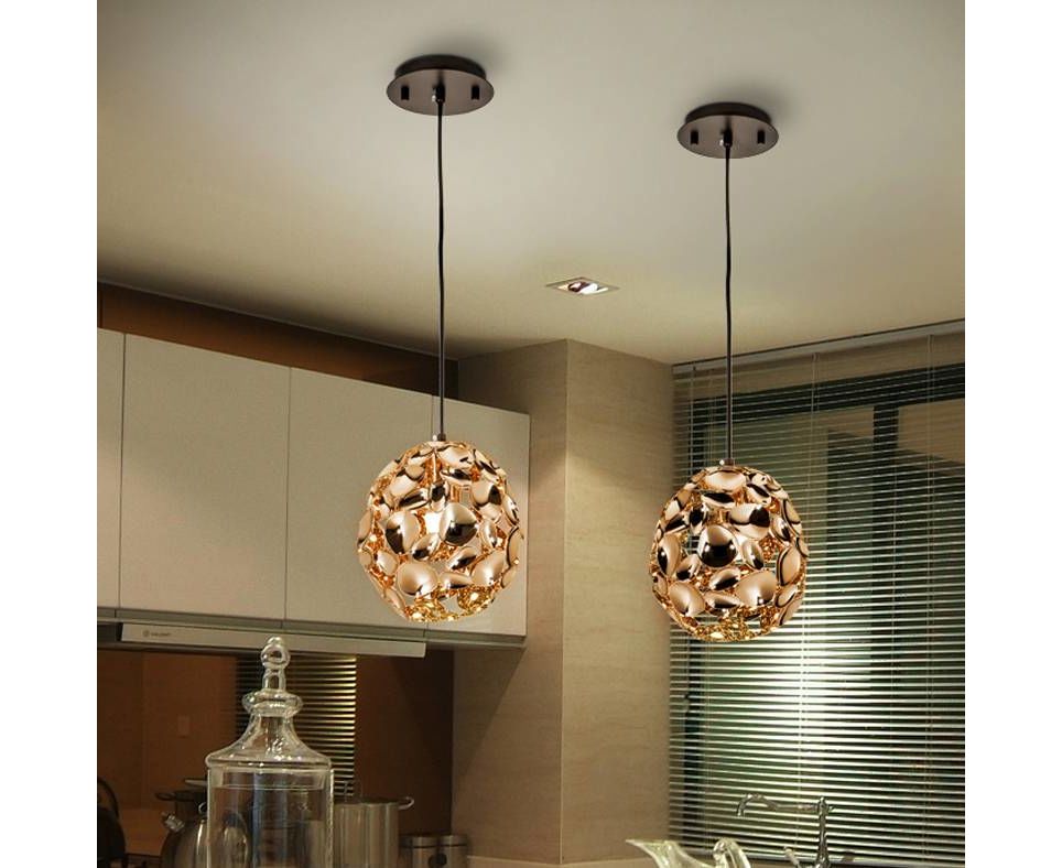 Подвесной светильник с 1 лампой, из металла с покрытием "розовое золото" и с тёмно-коричневым покрытием, акриловый рассеиватель внутри, с регулируемой высотой.