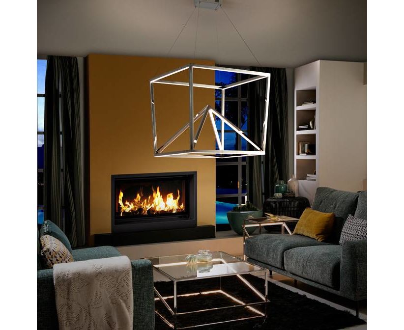 Подвесной светильник LED из полированной нержавеющей стали. Ленты LED под рассеивателями из белого поликарбоната.