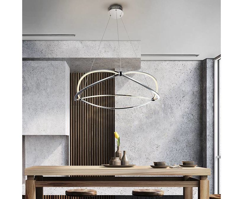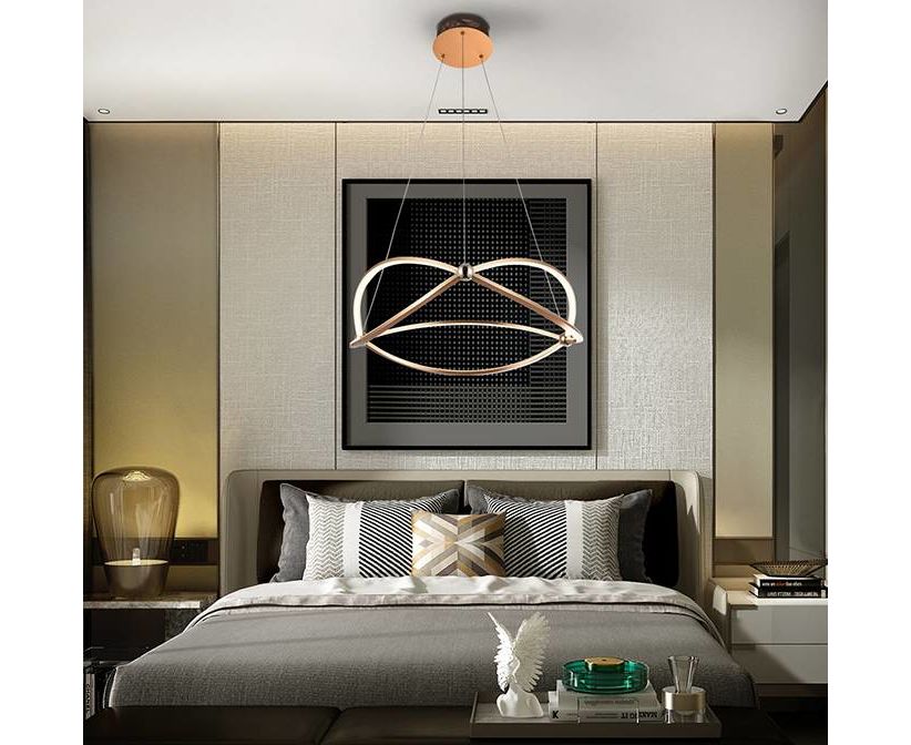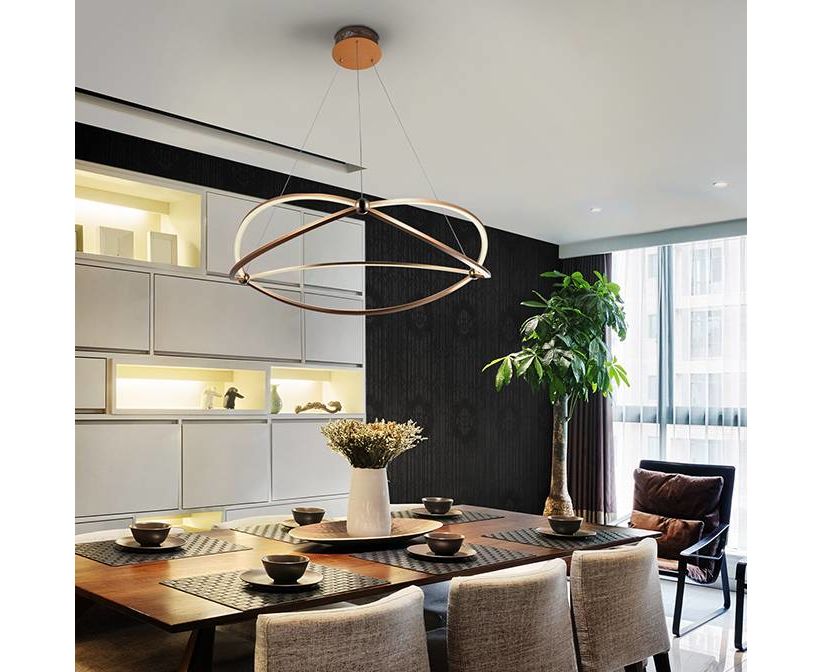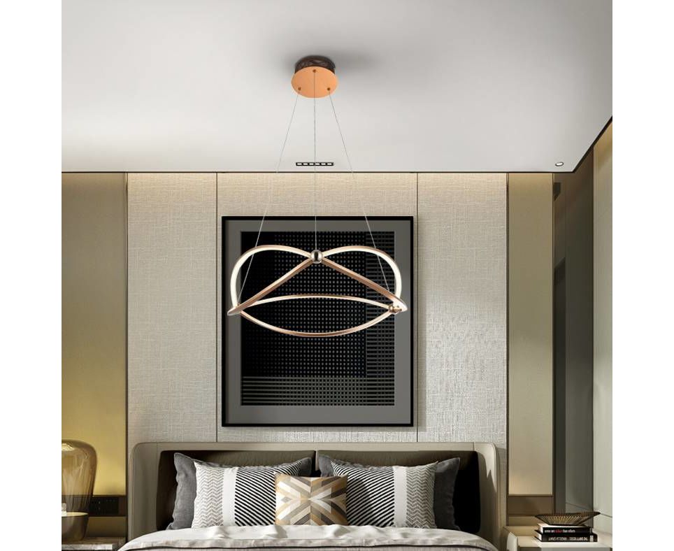 Подвесной светильник LED из алюминия с матовой полировкой с золотистым покрытием. Силиконовые рассеиватели опалового цвета, с регулируемой высотой.
