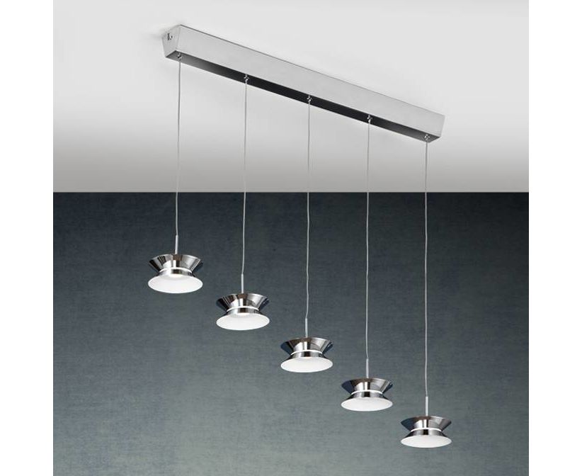 Подвесной светильник LED из металла с покрытием "хром", плафон с акриловым диском в центре, с регулируемой высотой
