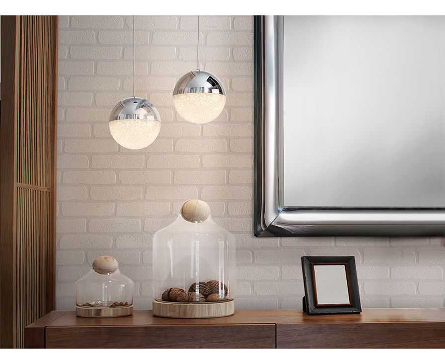 Подвесной светильник с 1 лампой, из металла с покрытием "хром", шарообразные плафоны Ø12 из металла и фактурного внутри поликарбоната, с регулируемой высотой. 4,8W LED, 3000 K.