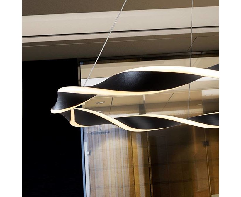 Подвесной светильник из металла и алюминия, зернистое матовое чёрное покрытие. Рассеиватель из силикона опалового цвета.
