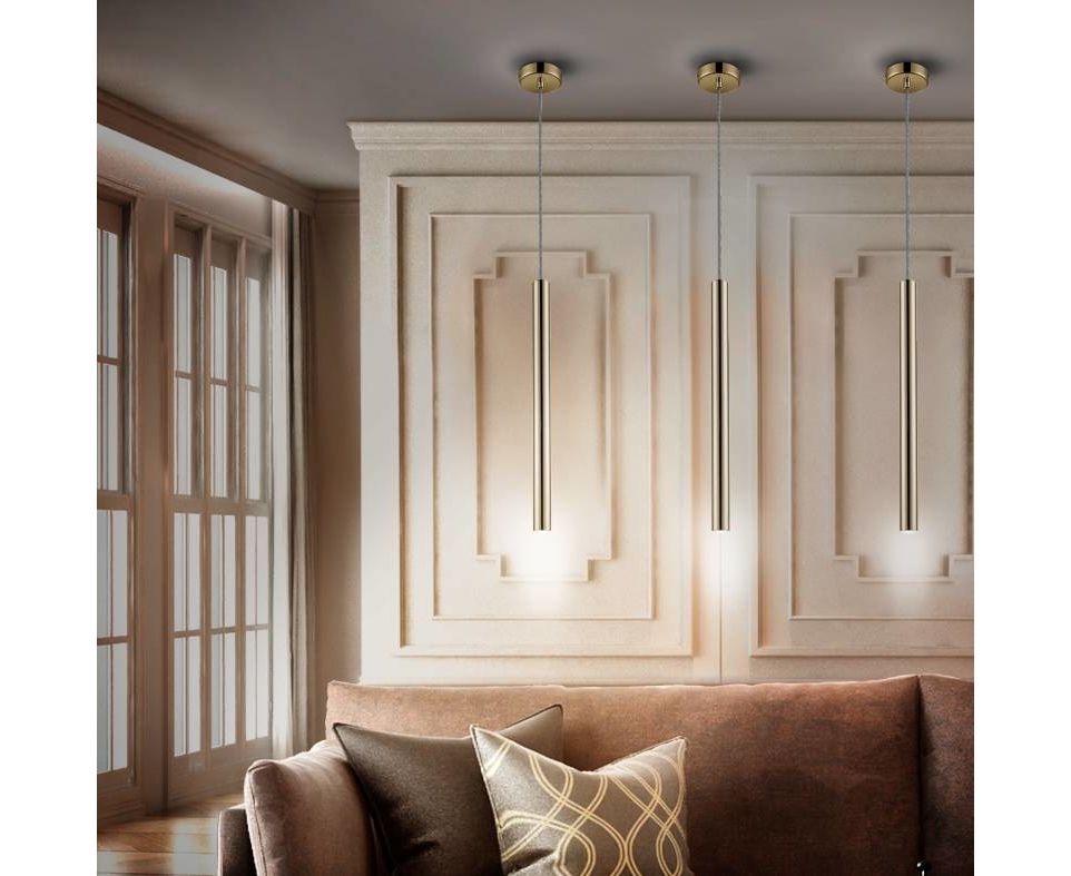 Подвесной светильник LED с 1 лампой из металла с покрытием "блестящее золото". Акриловый рассеиватель опaлового цвета. 5W LED, 450 Lm, 3000 K. Диммируемый.