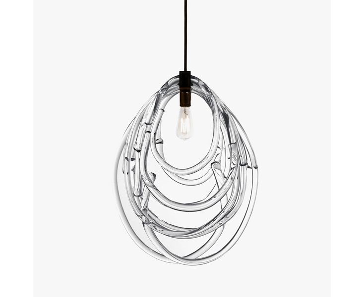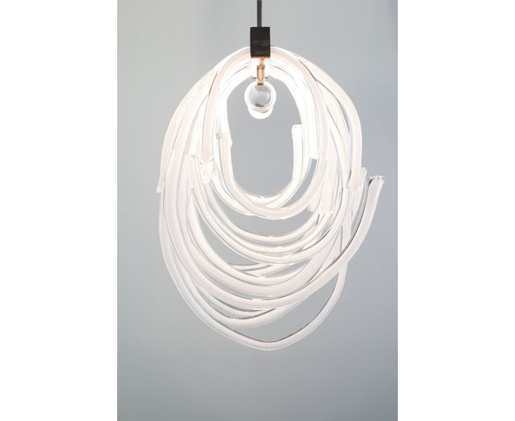 SkLO lassos - сплошные петли из выдувного чешского стекла - служат здесь оттенком и рассеивателем для этого уникального подвесного светильника. Стеклянные петли бывают разных размеров, демонстрируя удивительную глубину и прозрачность чешского стекла. Каждая петля уникальна, является выражением руки мастера стекла - нет двух абсолютно одинаковых.