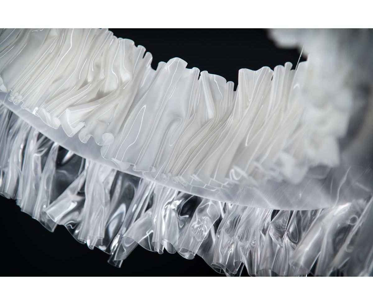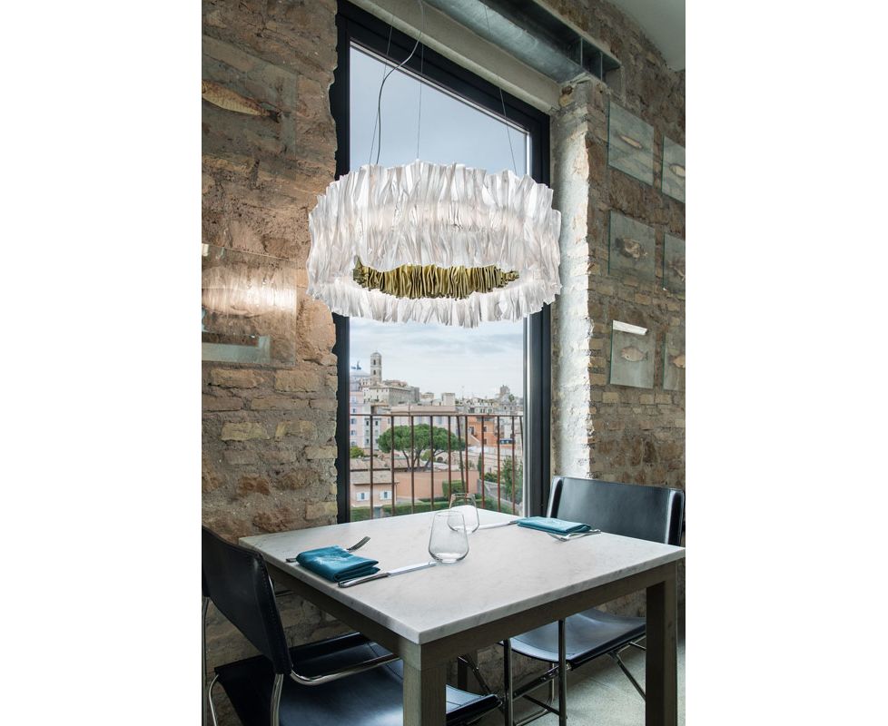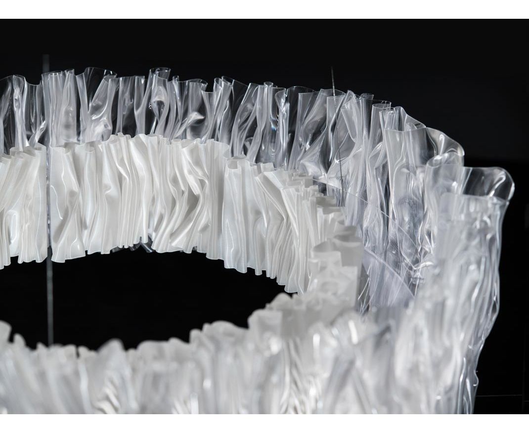 Марк Садлер исследует безграничные возможности технополимеров Slamp с Accordèon, создавая образ текстильного плиссе или меха аккордеона. Коллекция является верным маркером нового современного повествования, в котором дизайн, мода, ремесленная техника и технологии постоянно взаимодействуют. Светодиодная корона, в 2,700 или 3000 кельвинов в зависимости от выбора, достигает до 5,700 люмен и может быть затемнена.