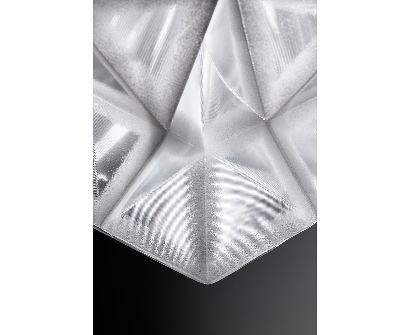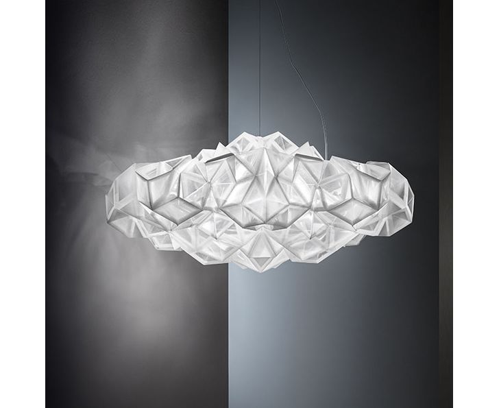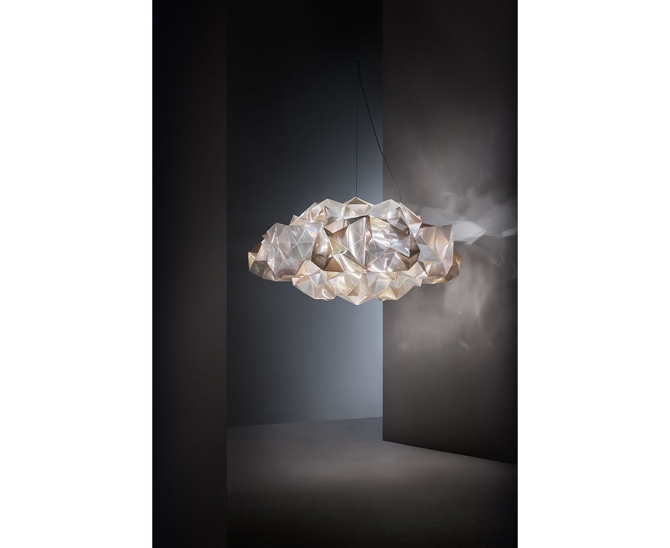 Drusa черпает вдохновение из кристаллов, высовывающихся из щелей в скалах; они демонстрируют постоянно меняющийся, поэтический и разнообразный калейдоскоп при попадании на них света. Современные хроматические углы, подчеркнутые Lentiflex® и отделанные бархатным принтом, приглушены центральным источником света, который не только придает глубину дизайну, но и создает гармонию между светом и формой. Drusa, напоминающая бриллиант, доступна в подвесном и потолочном вариантах, а ее бесконечные хроматические оттенки создают свежий, модный вид в любом пространстве.