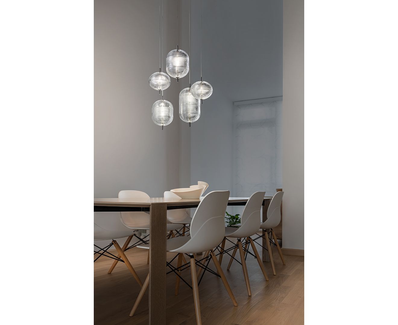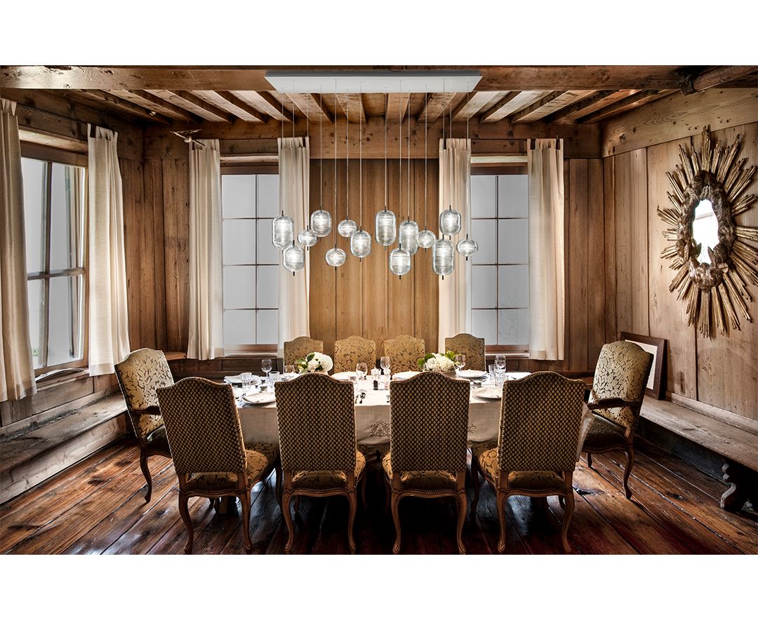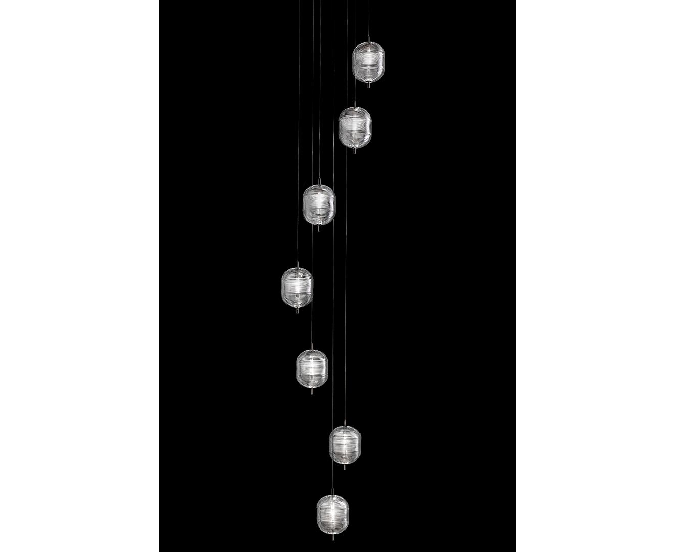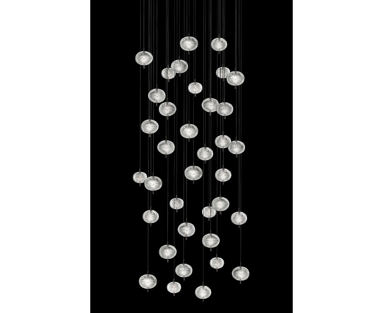 Уникальный дизайн светильника Jefferson относится к музыке и культовым образам в стиле 60-х годов в психоделическом искусстве. Атмосфера интерпретируется через драгоценный богемский кристалл с формами в разных эллиптических гранях, которые позволяют создавать различные версии светильника во множестве комбинаций с бесконечными и динамическими отражениями.