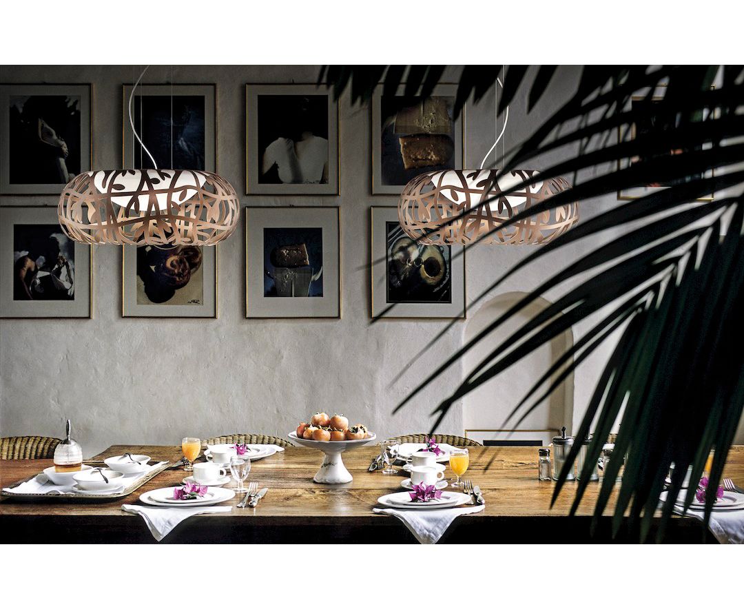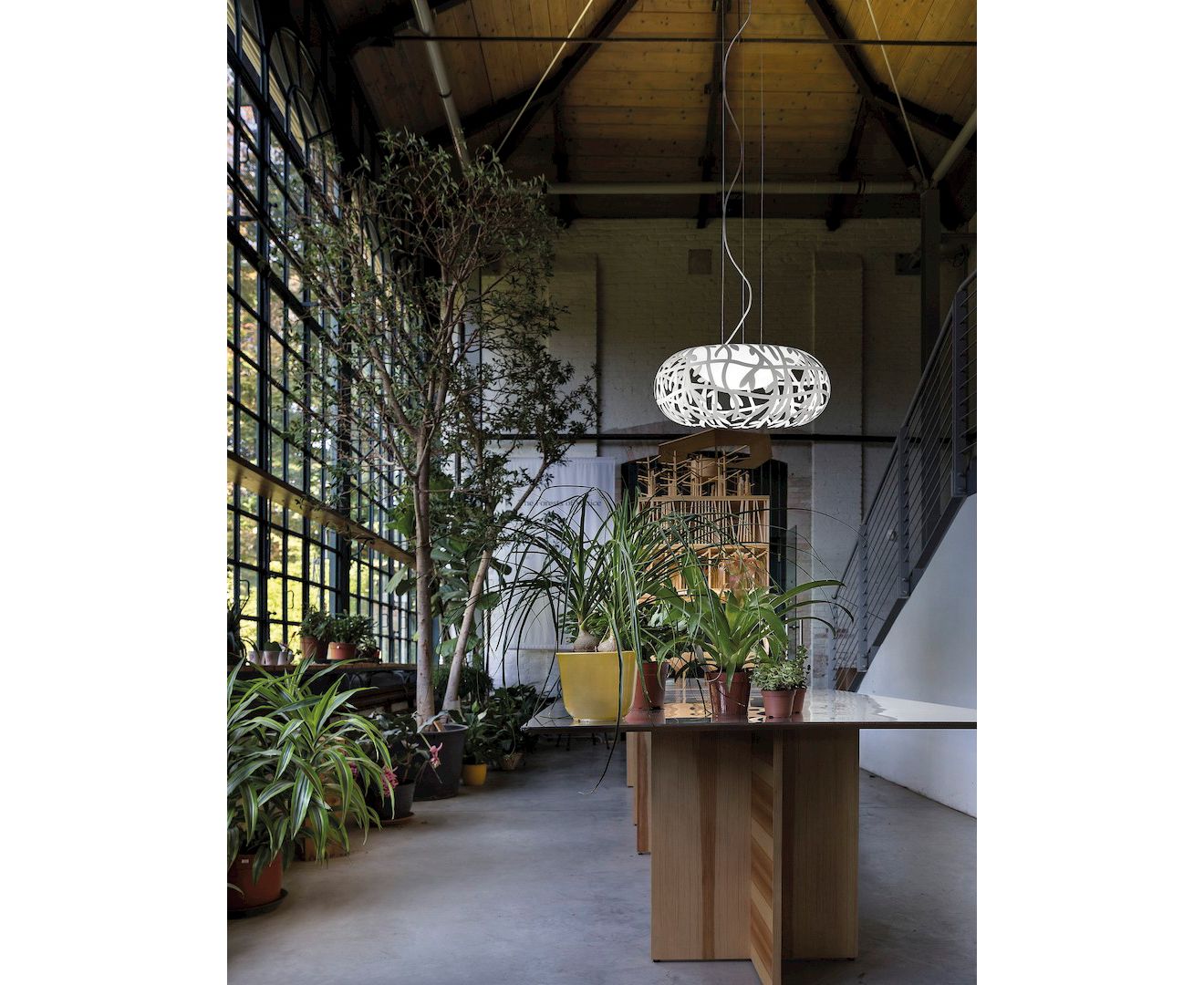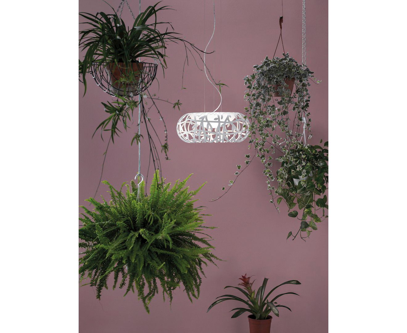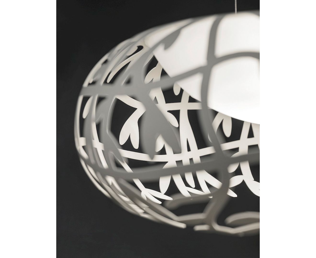 Из отличительной черты Марты Сансони родился светильник Maggio, символ интенсивного и соблазнительного весеннего пробуждения с волшебными и наводящими на размышления световыми эффектами, достигнутыми благодаря его резьбе в сочетании с рассеянным и непрямым светом. Его металлическая структура с лазерной резкой и декоративной перфорацией придает легкий и элегантный вид благодаря его мягкой поверхности, напоминающей ветви, пересекающиеся друг с другом, как символ спонтанной и пышной растительности, вносит органичный и целеустремленный дизайн, не будучи навязчивым в интерьере.