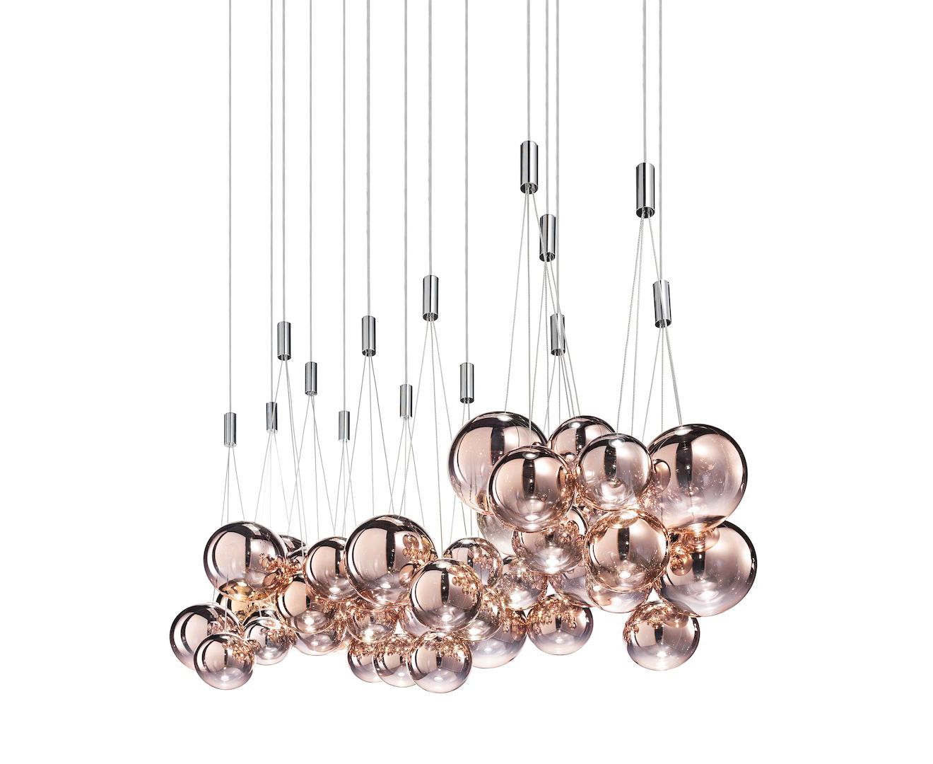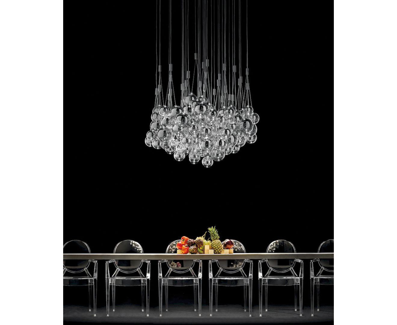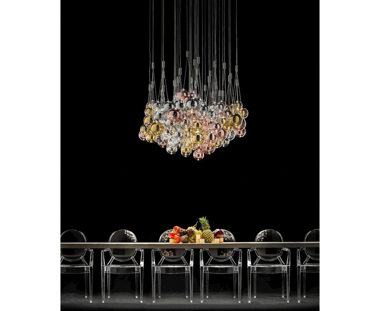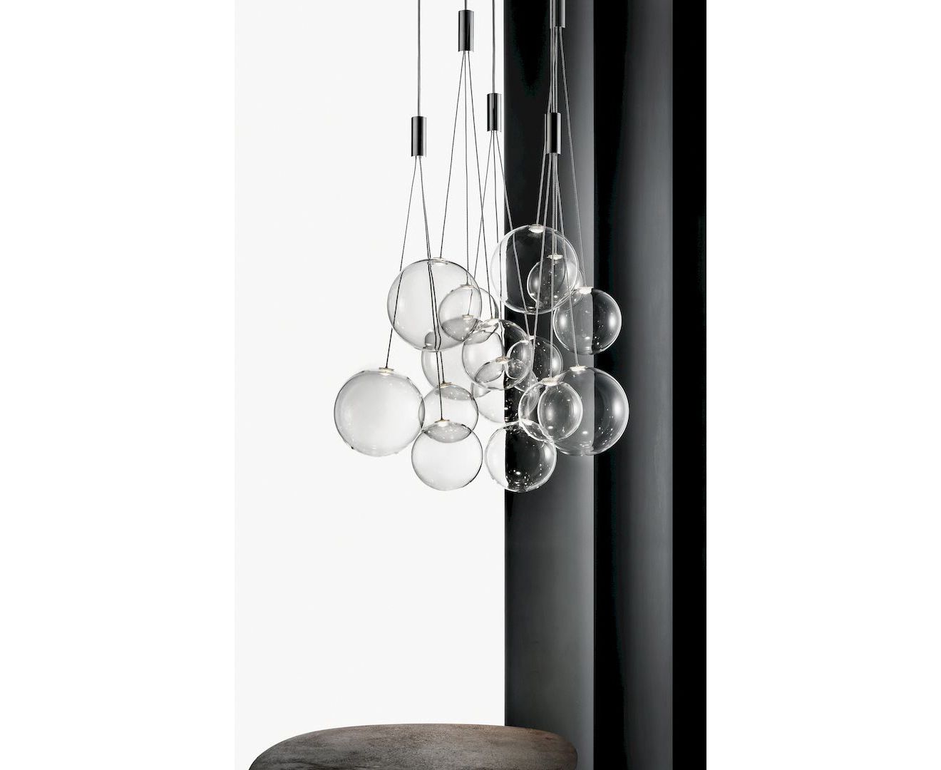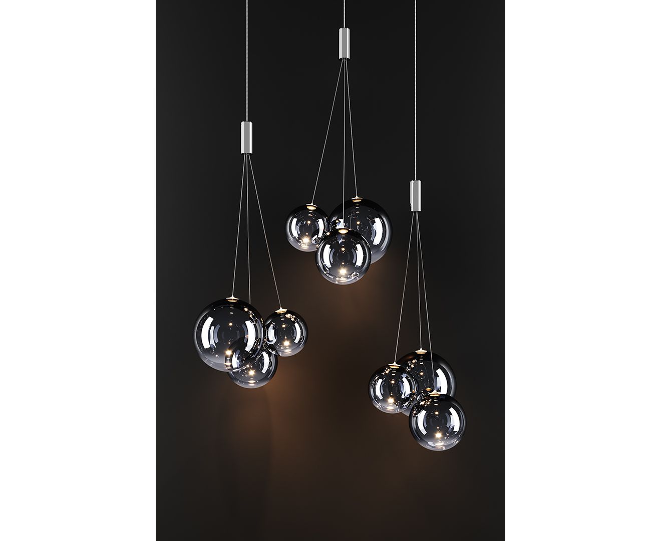 Random - это волшебная подвеска, состоящая из трех сферических диффузоров из выдувного стекла, которые образуют живой и, казалось бы, случайно получаемый объект. Каждый стеклянный рассеиватель оснащен встроенным светодиодным источником света, который обеспечивает теплый белый свет. Три стеклянные сферы, образующие свет, имеют разные размеры, и каждая подвешена на тонком кабеле. Различные размеры, высота подвеса и то, как сферы цепляются друг за друга, придают случайным образом живой случайный характер. Модульность ассортимента позволяет создавать бесконечное множество кластеров.