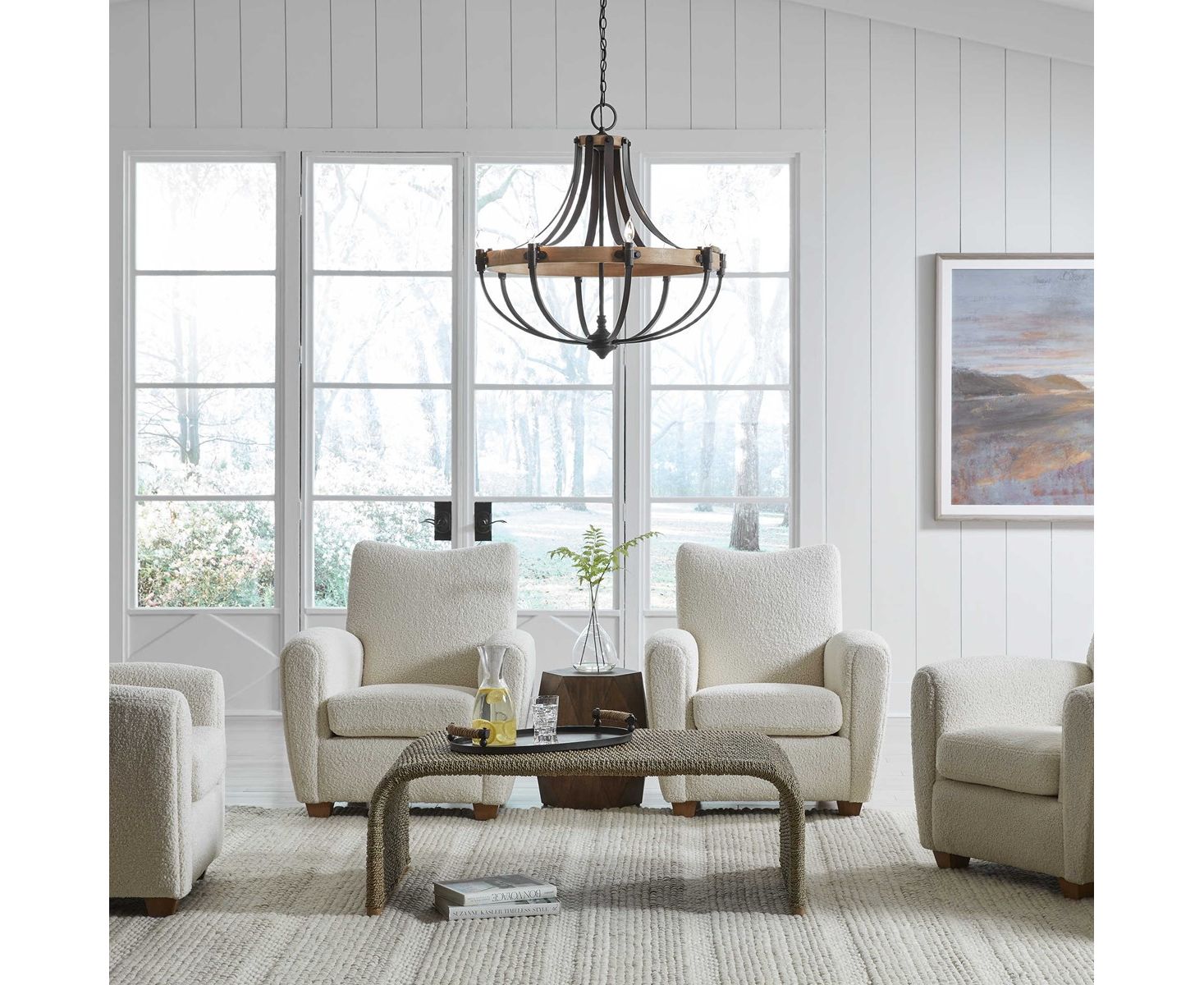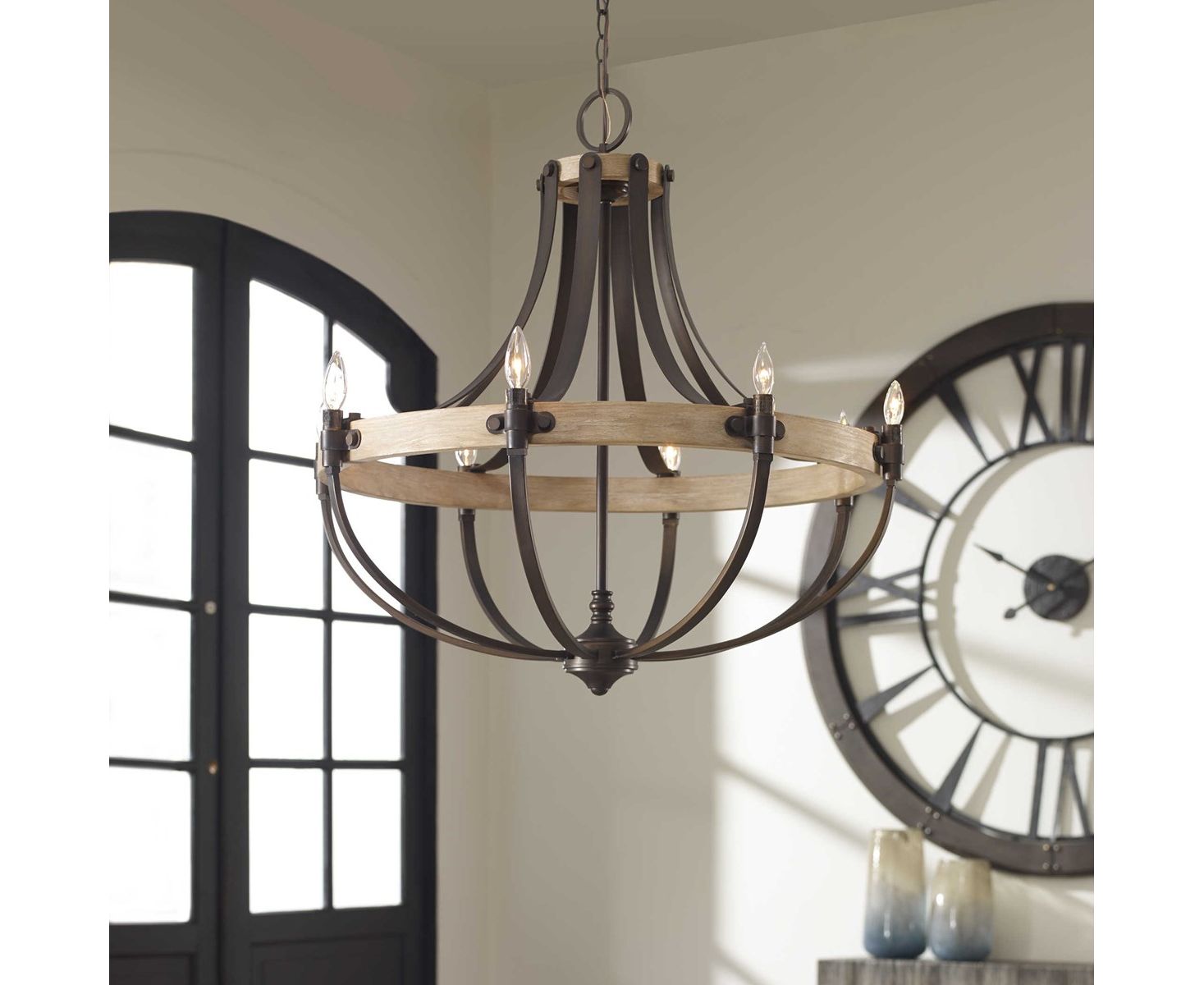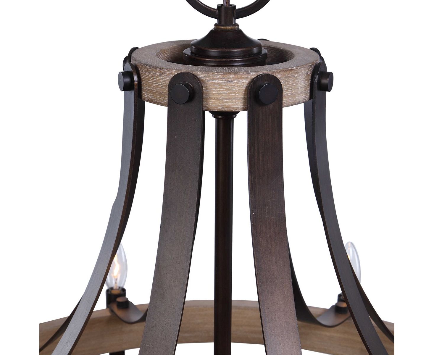 Обновленная люстра в стиле ампир с французским влиянием, с кольцом из натурального дуба и бронзовой металлической рамой.