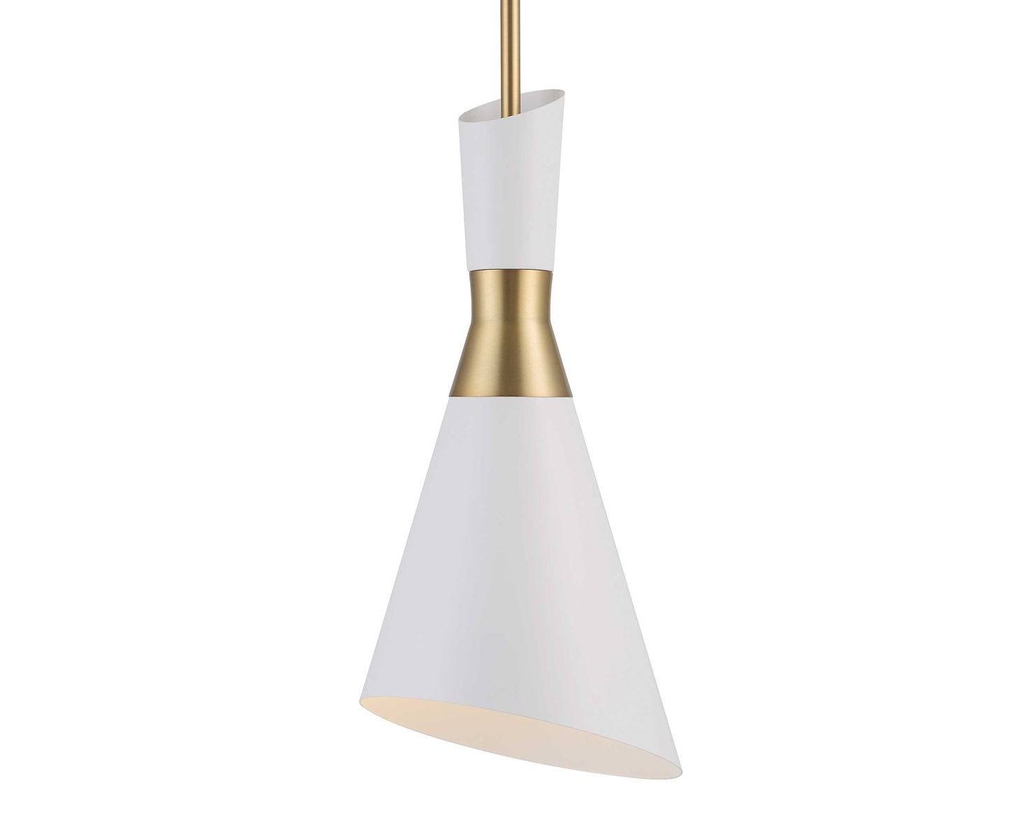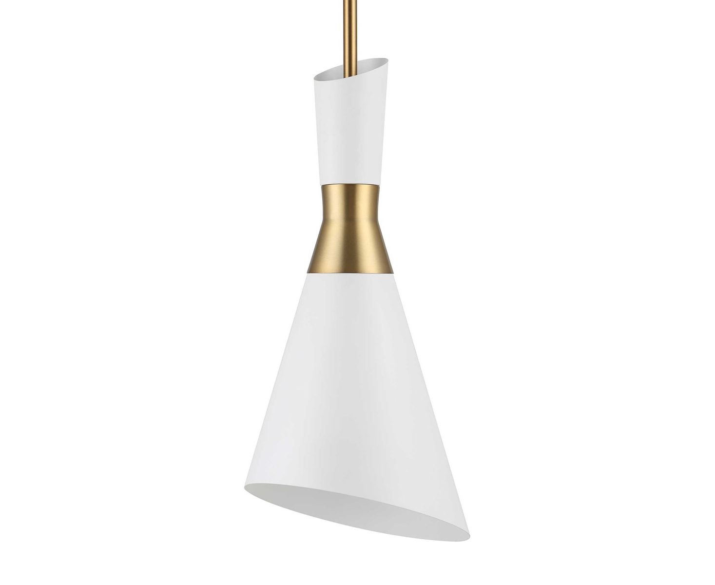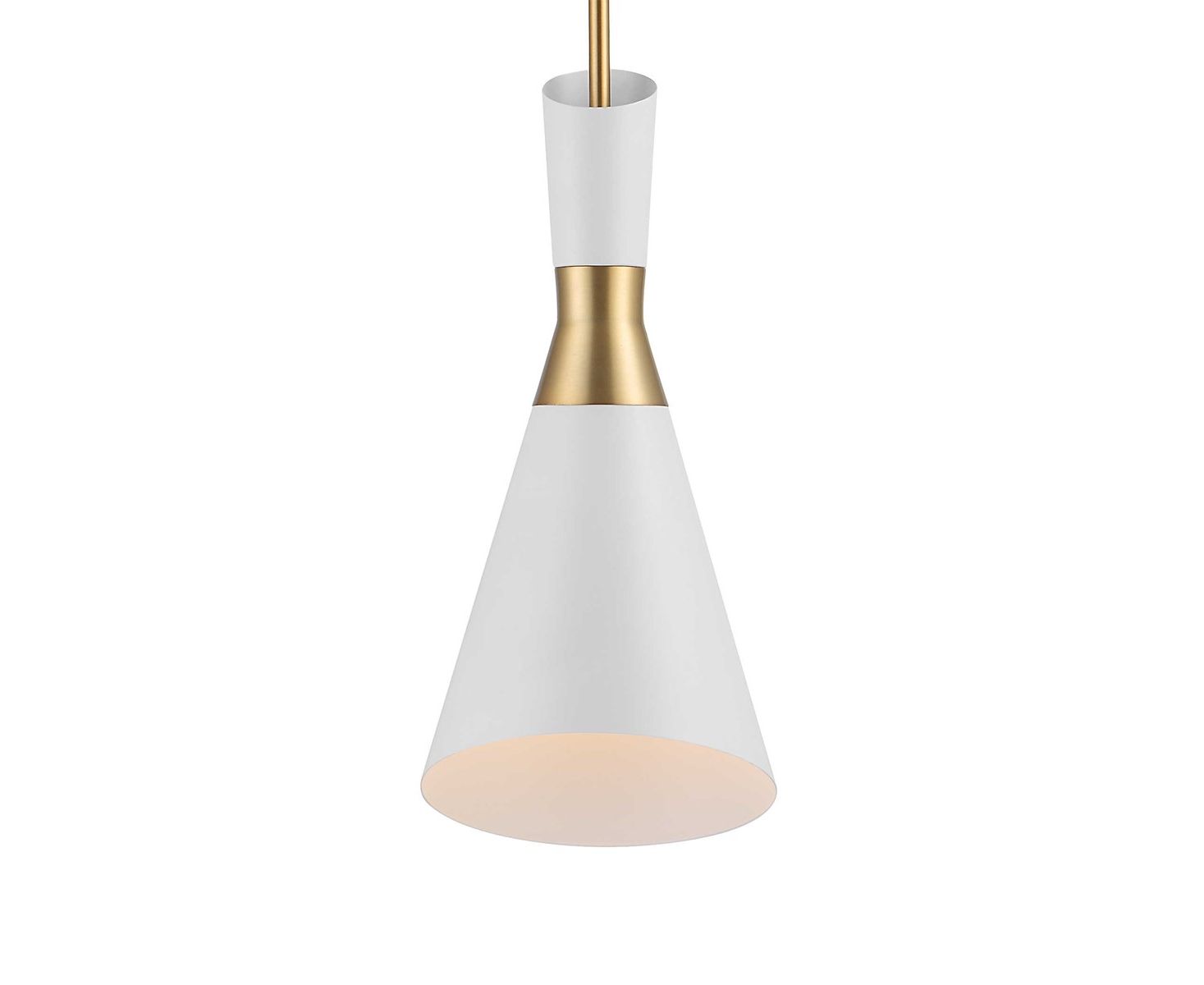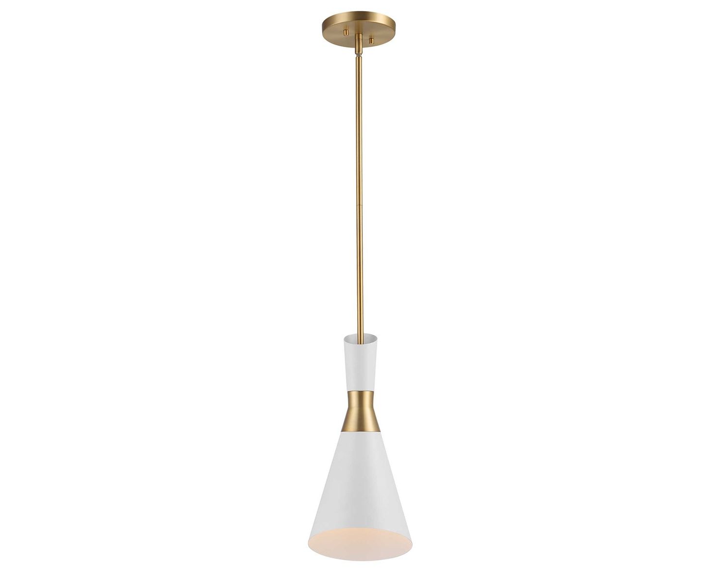 Современные линии и формы в отделке из белой и античной латуни с элементами ретро придают классический вид конусообразного подвесного светильника середины века.