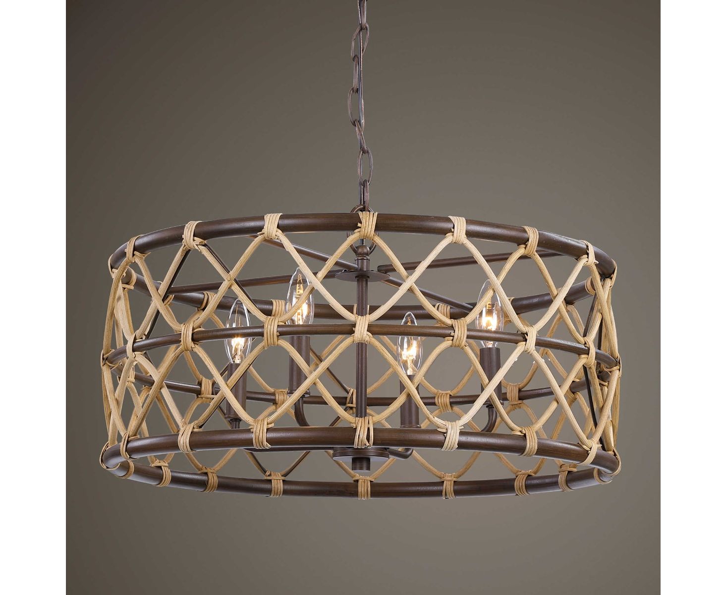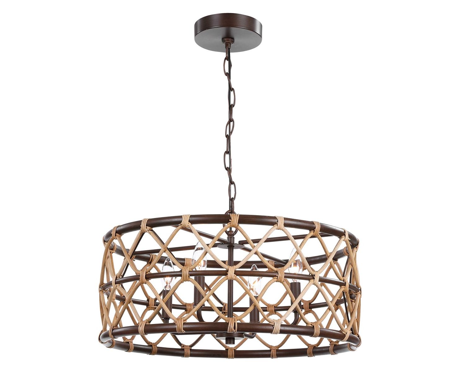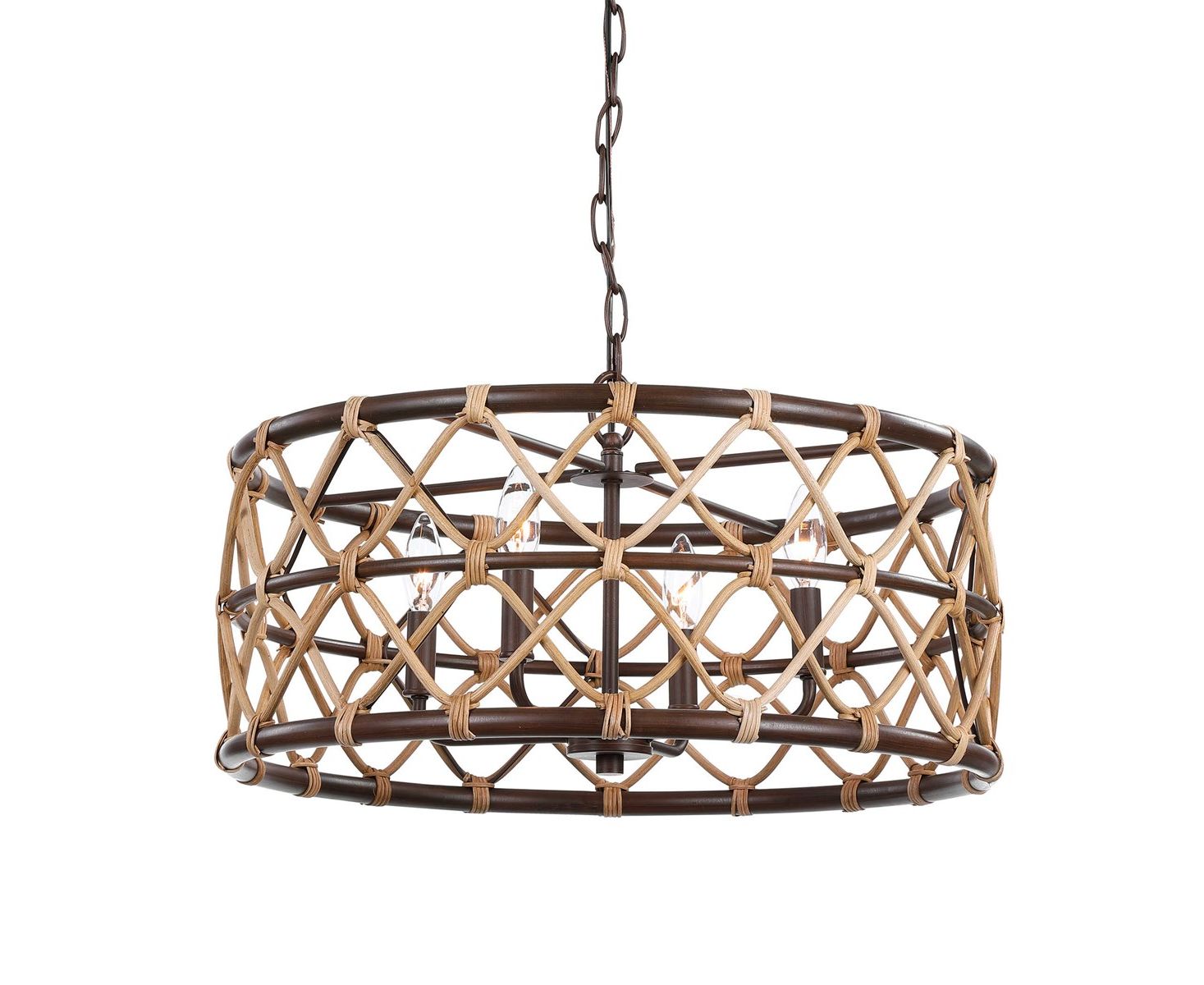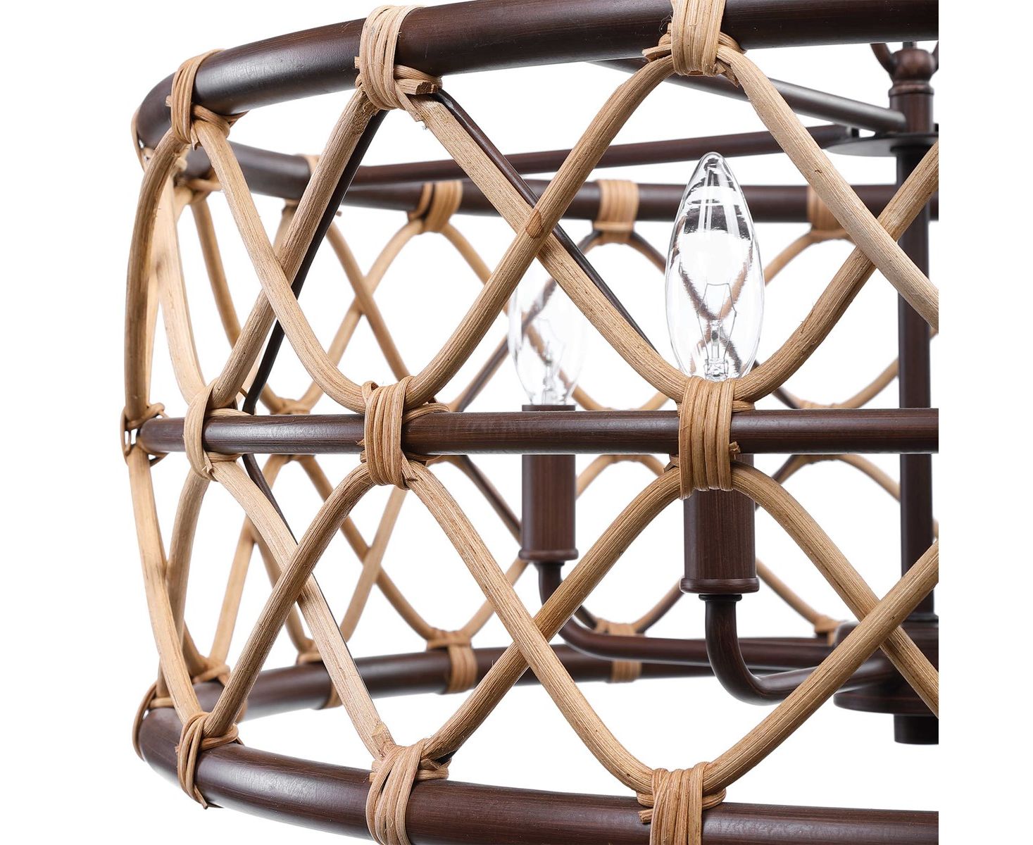 Подвесной светильник на 4 лампы с натуральным изогнутым ротангом и нежной свежестью с масляными бронзовыми вставками.