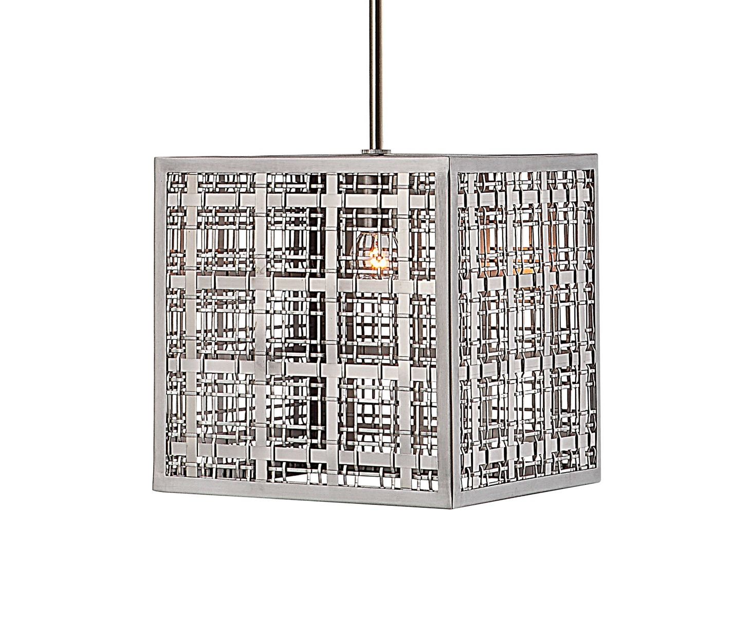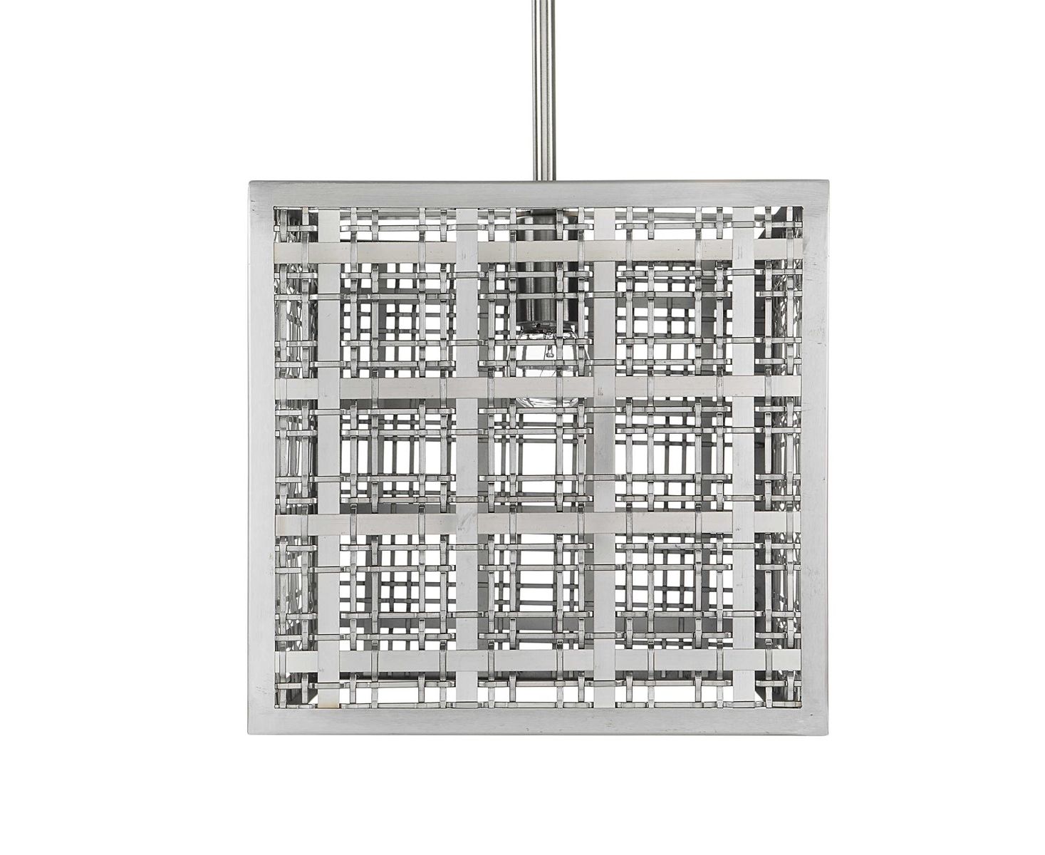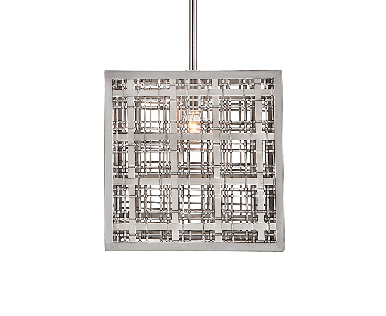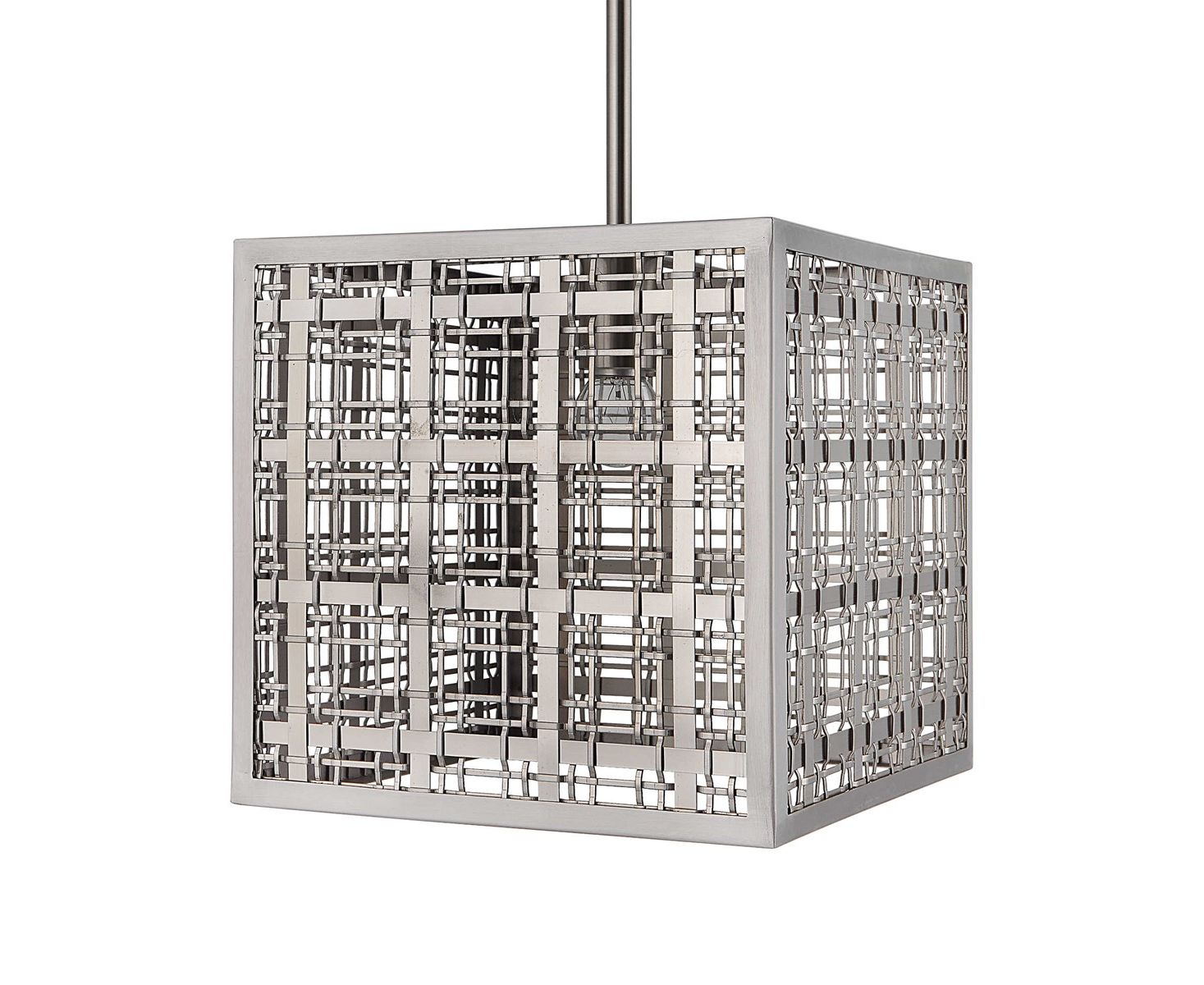 Плетеные атласные никель-полоски с клетчатым рисунком придают обновленный традиционный вид этому классическому прямолинейному подвесному светильнику.