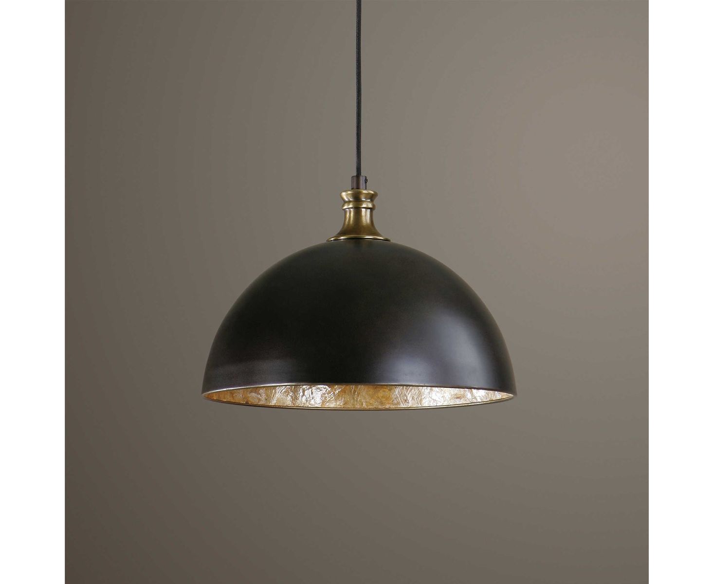 Мы взяли простой внешний вид металлического подвесного плафона в тихоокеанской бронзовой отделке с акцентами из старинной латуни и добавили роскоши, в виде теплой старинной оболочки.