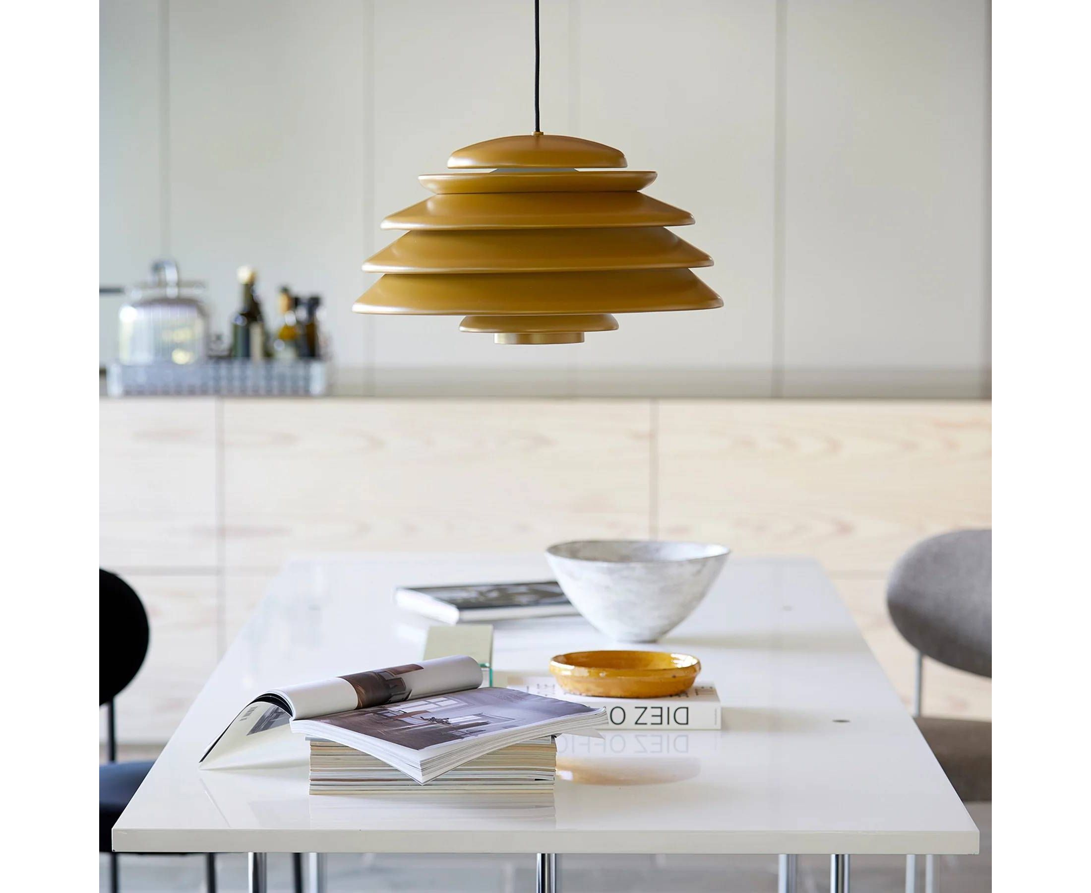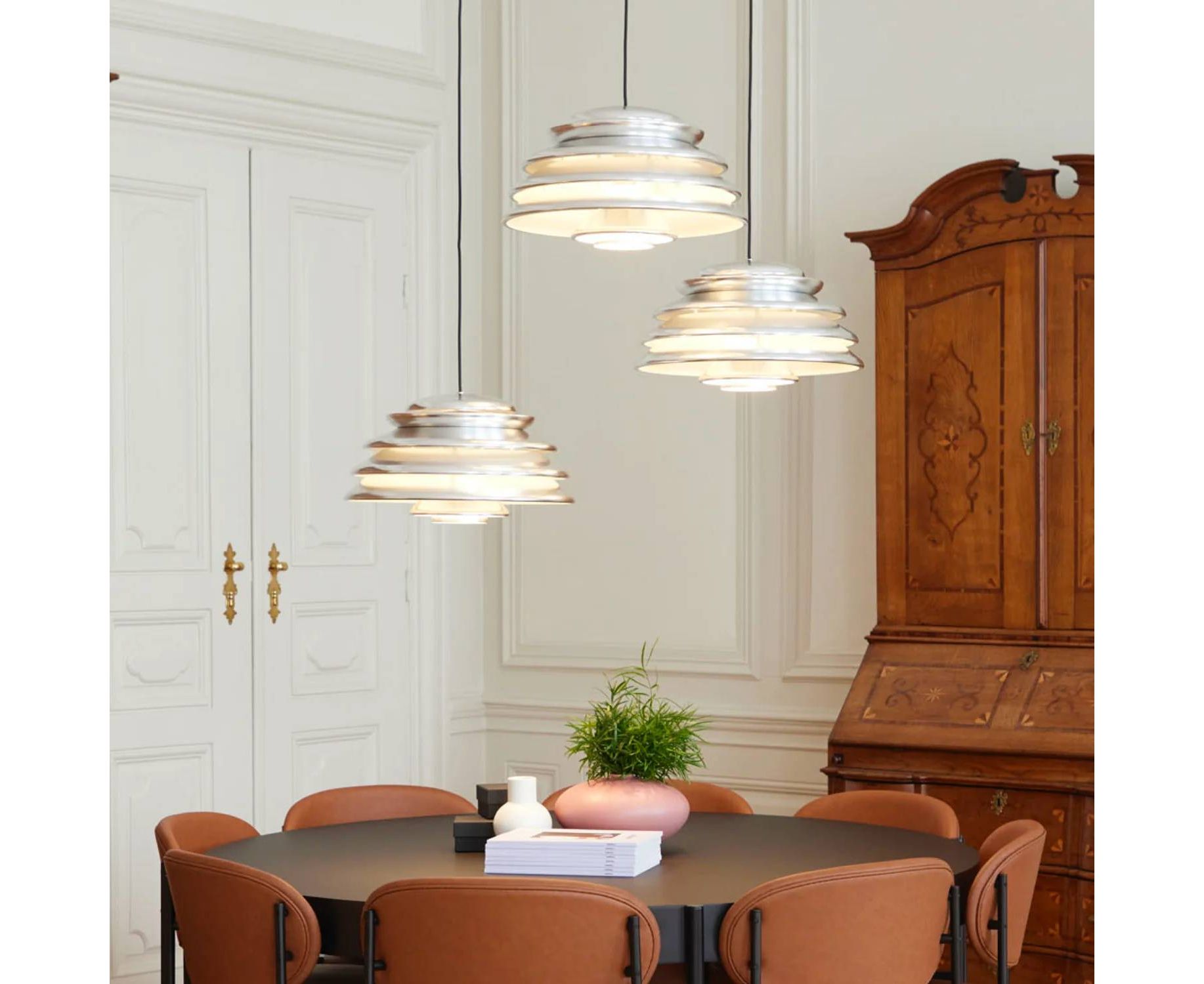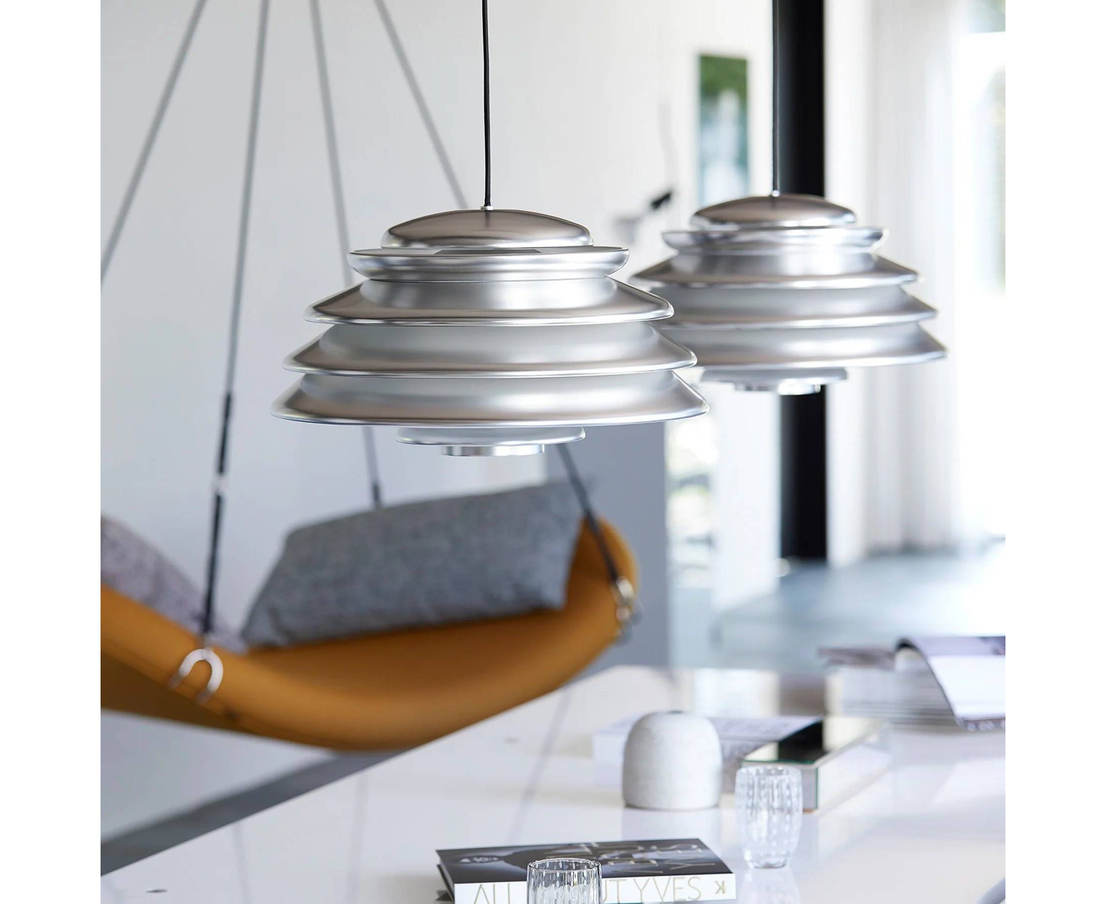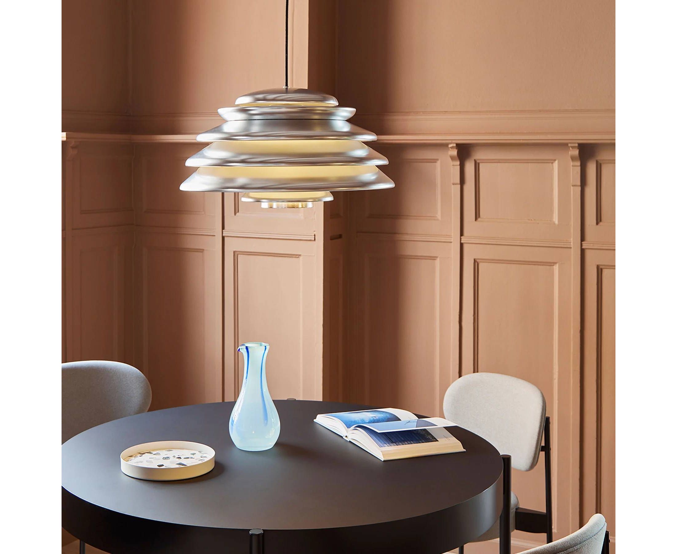 Подвесная лампа с прямым нисходящим светом и многослойными абажурами, рассеивающими свет по всему окружению. Пантон был известен своей искусной игрой с основными геометрическими формами, фигурами и системами - часто черпая вдохновение в органических силуэтах, встречающихся в природе, и подвесной светильник Hive не является исключением. Выполненный из множества концентрических абажуров разного размера, многослойный дизайн подвески обладает очень характерным и скульптурным качеством, обеспечивая при этом 100% отсутствие бликов.