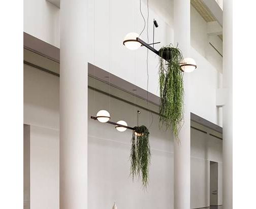 Vibia представляет подвесной светильник. Он включает в себя сферу из выдуваемого вручную стекла двух размеров, соединенную между собой ремешком и алюминиевыми конструкциями. Интенсивность светодиодного источника света регулируется с регулируемой яркостью.