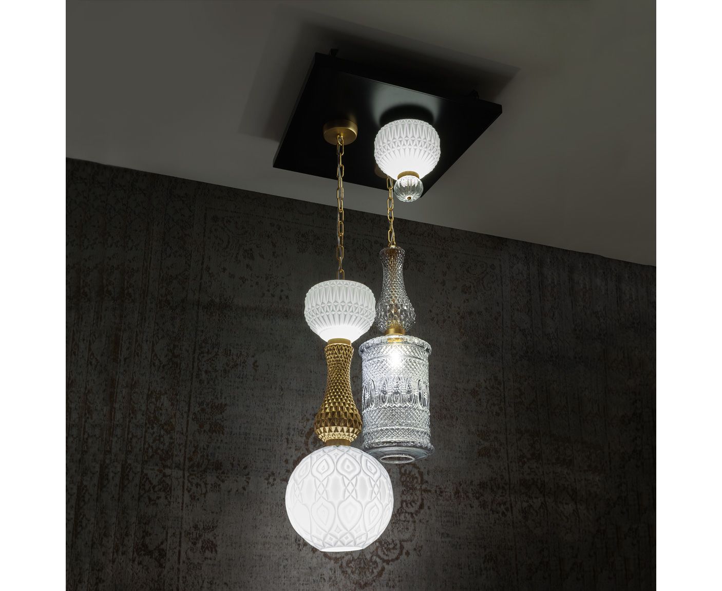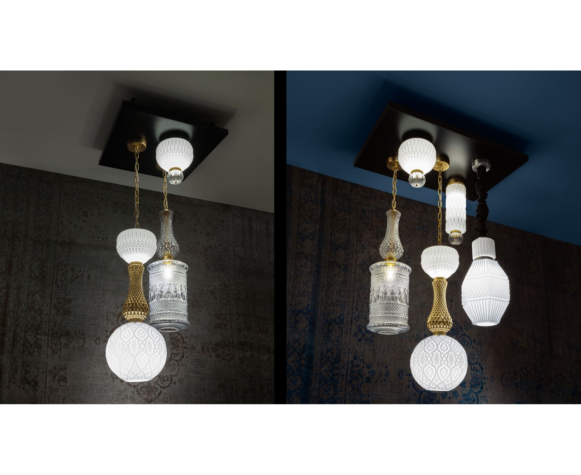 Коллекция OMG, аббревиатура Oh My Glass!, - дань красоте литого стекла. Разнообразие форм, размеров и отделок для «симфонии» подвесок и потолочных светильников. Цветовые вариации в стекле, отделка в раме и в формах делают возможными различные комбинации. Стекло доступно в прозрачном или белом цвете. Структура: матовый никель или золото. Потолочный навес: матовый никель или золото.