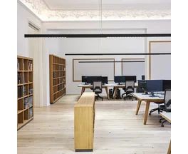 Серия офисных светильников BETO представляет собой элегантную линию, субъективно либо соединяющую, либо разделяющую удачный дизайн помещения. Идеальный светильник для рабочего места в сочетании с элегантным дизайном доступен в виде напольного светильника, подвесного светильника, а также в виде прямой или изогнутой системы. BE TO предлагает многофункциональное световое решение с однородным внешним видом.
