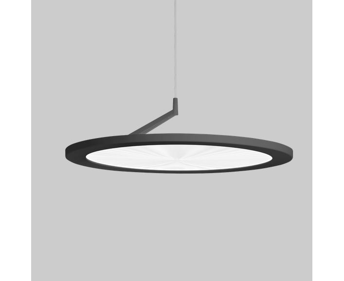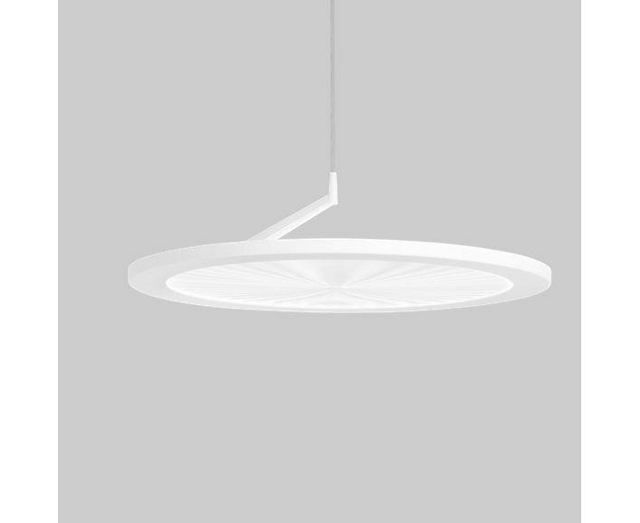Кольцевидный плафон из литого под давлением алюминия; поверхность белая или черная с порошк. покрытием; подвесной светильник на шнуре 1500 мм, шнур находится в прозрачном питающем кабеле; электронное устройство упр. смонтировано в потол. розетке; наклонный маятник со встр. кабелепроводом и механизмом регулировки для компенсации наклона; встроенный теплоотвод с геометрией светильника для оптимального терморегулирования и пассивного охлаждения светодиодов; прямое/непрямое светораспределение благодаря корпусу LGP (Light Guiding Prism); вводимый сбоку свет перенаправляется через лазерную гравировку вверх и вниз; опционально только с прямым излучением, управление светом с помощью высокоотр. материала рефлектора; область прям. излучения: рассеиватель из ПММА круглопризм. структуры, абс. однородная подсветка; светильник для рабочего места перед монитором согласно DIN EN 12464-1 (UGR < 19); энергоэфф. светодиоды с высокой степенью цветопередачи; биннинг начальный ≤ 3 МакАдаму; поставляются с цветовой темпер. 3000 K и 4000 K; CRI ≥ 80; мин. 80% светового потока спустя 50000 ч эксплуатации; потолочная розетка с 2 кабельными отверстиями и штепсельным зажимом для проходной кабельной разводки; степ. защ. IP 20; Защ. I; рег.ярк. DALI.