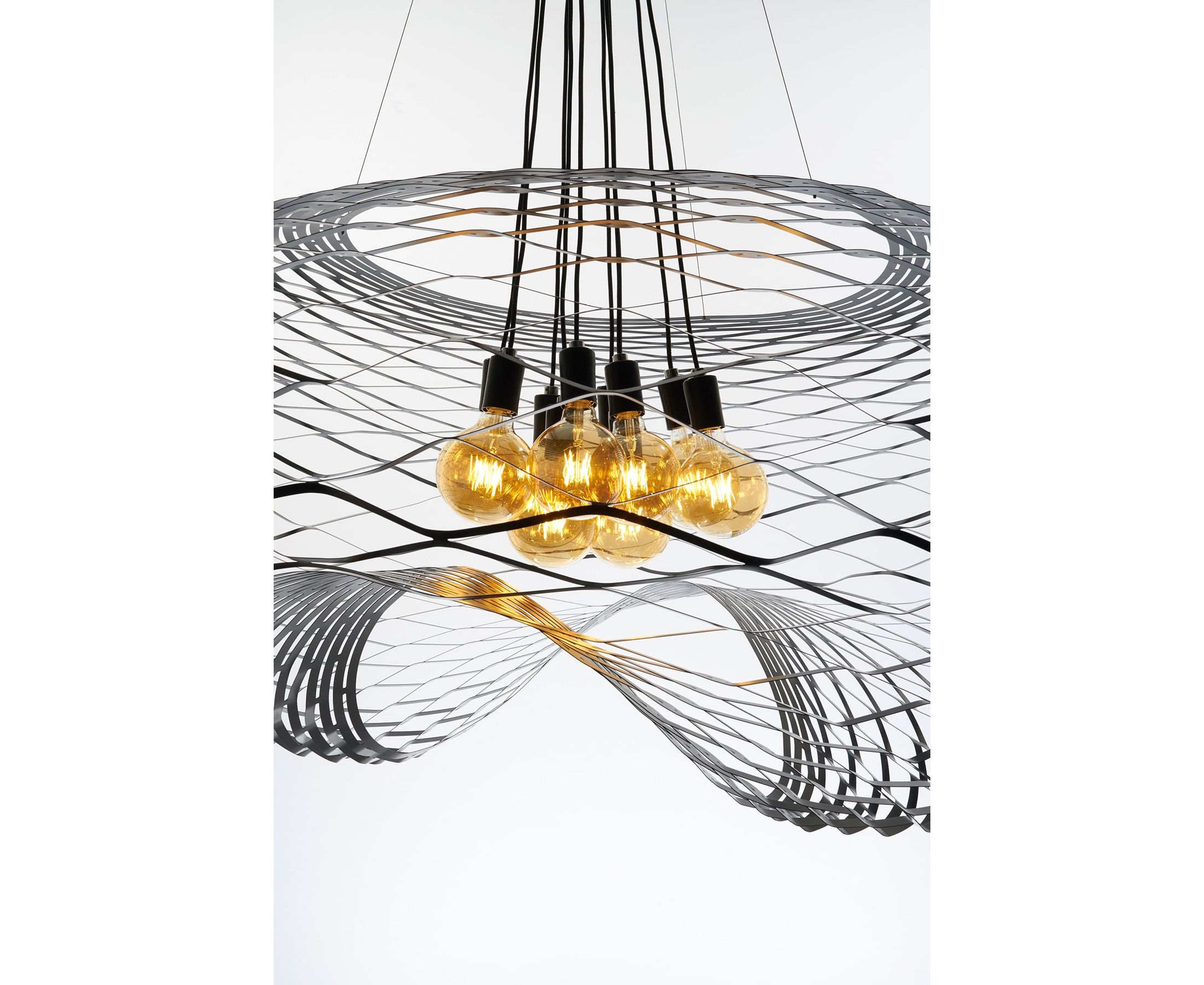 NET - это лампа из листовой стали с сильным скульптурным наклоном. Диффузор выполнен из лазерной резки на стальном листе на основе концентрических альтернативных линий. Они превращают его в толстую решетку, что позволяет диффузору достичь бесконечных стильных решений. Он может принимать простые, чистые формы для адаптации к дискретным и минимальным или сложным геометрическим и скульптурным средам, придающим характер и обогащение домов или общественных пространств. Когда он включен, он демонстрирует приятный декоративный эффект на стенах. Есть подвесные, напольные и настольные версии.