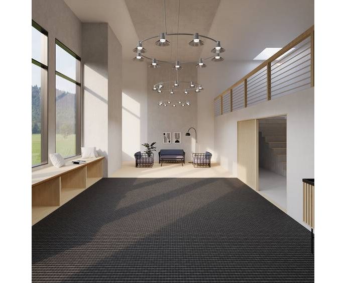 Подвесной светильник из лакированного алюминия, текстильный кабель. Опаловая решетка для более мягкого света (комфорт) или матовая прозрачная решетка для более концентрированного нисходящего света (высокая мощность).