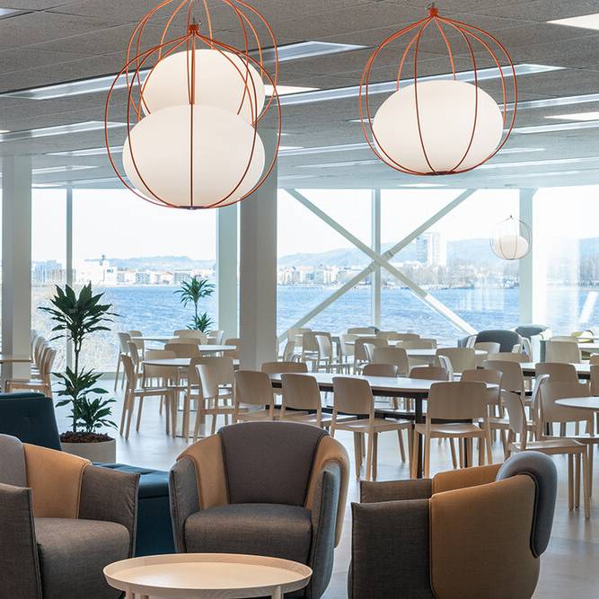 Новый подвесной светильник Hoop от Front демонстрирует явное родство с элегантной тонкой металлической структурой предыдущего светильника Plane. Слегка эллиптическая сфера находится в системе колец, освещая их внутреннюю часть с удивительным эффектом. Все это время электричество гениально спрятано в его конструкции.