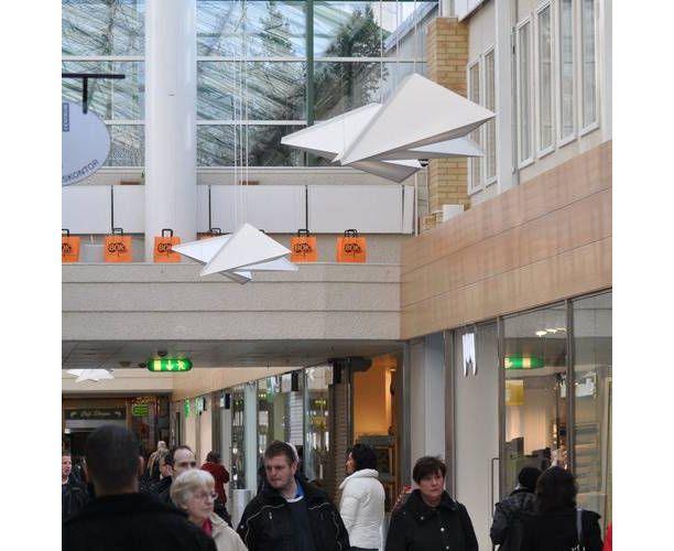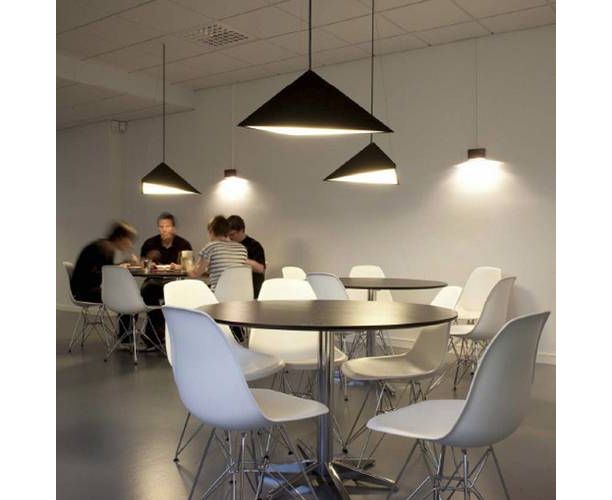 Подвесной светильник оригинальной пирамидальной формы может использоваться в домашних и офисных пространствах.