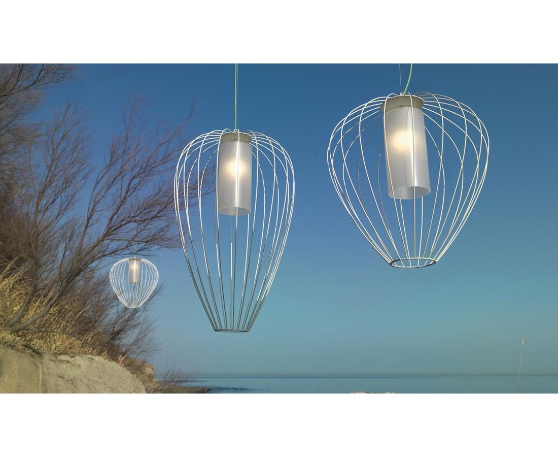 Более двух тысяч лет назад в Китае самые первые фонари взмыли в небо. Cell эмулирует их структуру и их дух, связывая воздух с тонкой металлической проволокой в белом или в новой бронзовой версии, клеткой света, которая повышает ее интенсивность. Светильник - светящееся сердце в белье для внутреннего варианта и в опаловом плексиглас для наружного, дополненное кисточкой из белого или черного шелка в бронзовом исполнении.