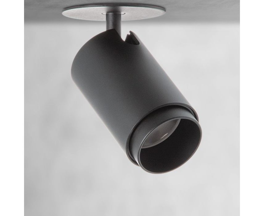 Полу встраиваемый светильник с круглой монтажной накладкой из литого алюминия с пружинами для монтажа на потолке толщиной макс. 12мм. Световая головка и корпус из литого алюминия. Световая головка наклоняется до 90° и поворачивается горизонтально на 355°. Его уникальный механизм опускания позволяет ему функционировать либо как нисходящий свет, либо как экспонированный светильник, способный имитировать потолочный или трековый светильник. Области применения: розничная торговля, гостиницы, музеи, витрины.