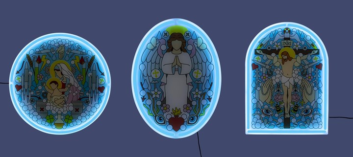 И последнее, но не менее важное: новый проект Studio Job для коллекции BLOW by JOB & SELETTI, совместное предприятие Seletti и дуэта, состоящее из Job Smeets и Nynke Tynagel. Вдохновленные их витражными проектами, эти продукты коллекции Gospel рождаются: настенные светильники, которые подрывно, но тонко переосмысливают стиль сакрального искусства.
