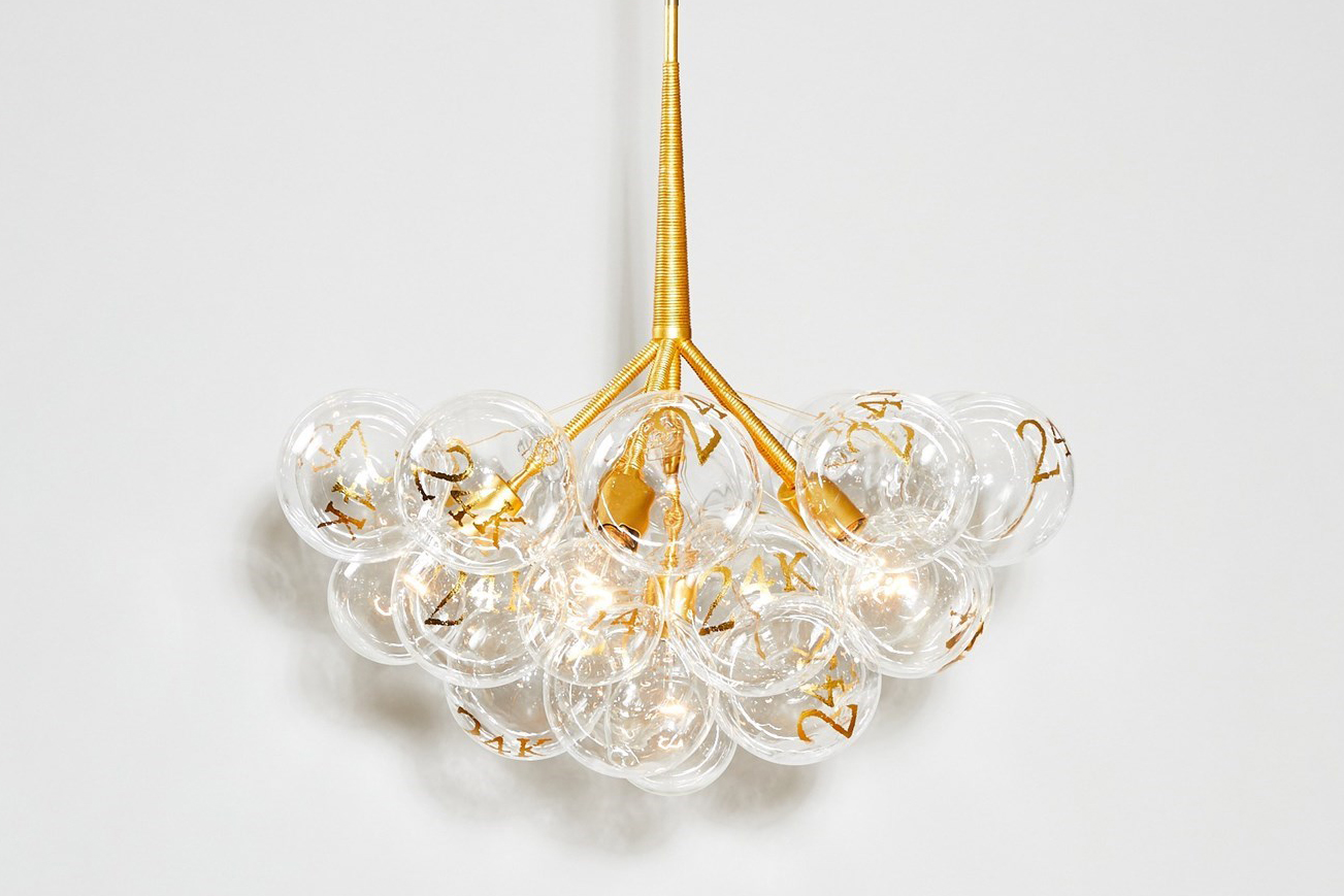 24K - это люстра Jumbo Bubble, позолоченная сверху донизу сусальным золотом. Каждый глобус украшен надписью «24K» в шрифте с альбома, который использовал Тупак Шакир, рэп-исполнитель, известный своими золотыми украшениями.