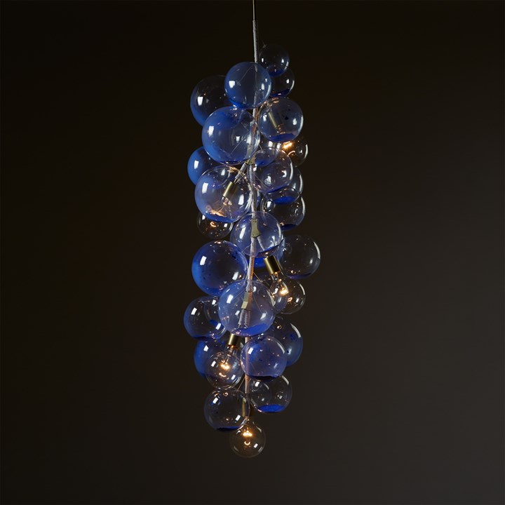 Yves Klein Blue - это Люстра X-Tall Bubble, которая кивает на использование Кляйном синего пигмента. На стеклянных глобусах XTall Bubble, насаженных известными кофейными столиками Klein, добавлен пигментный порошок Klein Blue.
