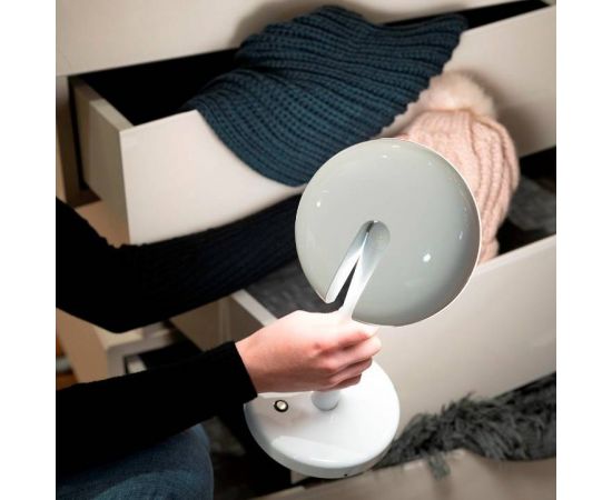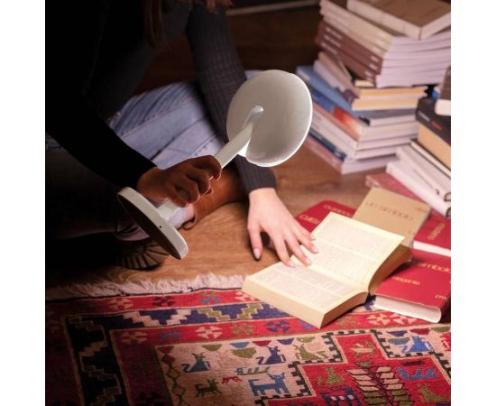 Беспроводная настольная лампа с прямым регулируемым светом. Конструкция из литого под давлением алюминия окрашена в белый, желтый и черный цвета. Встроенный светодиодный источник света. Аккумуляторная батарея с кабелем USB-C входит в комплект без зарядного устройства, продолжительность 8 часов, батарея предоставляется. Зарядное устройство USB не входит в комплект.