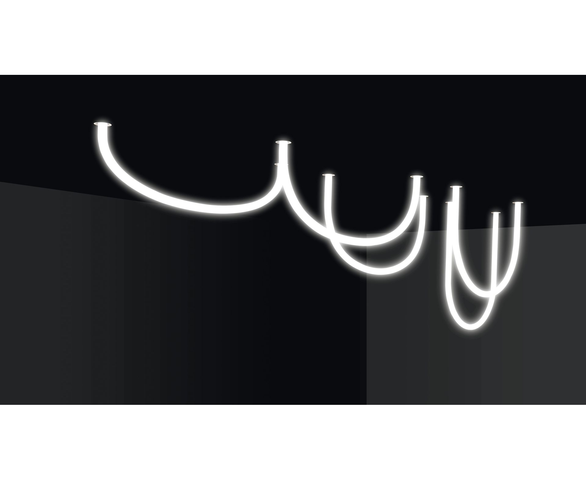 Soft Alphabet был разработан, чтобы дополнять Alphabet of light, внеся еще большую свободу для определения кривых линий в пространстве. Для воссоздания мягкости криволинейной линии в разной степени развиваются пять элементов, начиная с одной основной длины. Используемые как автономные светильники, объединенные вместе или с Alphabet of light system, они идеально подходят для создания динамических композиций в пространстве, каждый раз с превосходным комфортным качеством света.