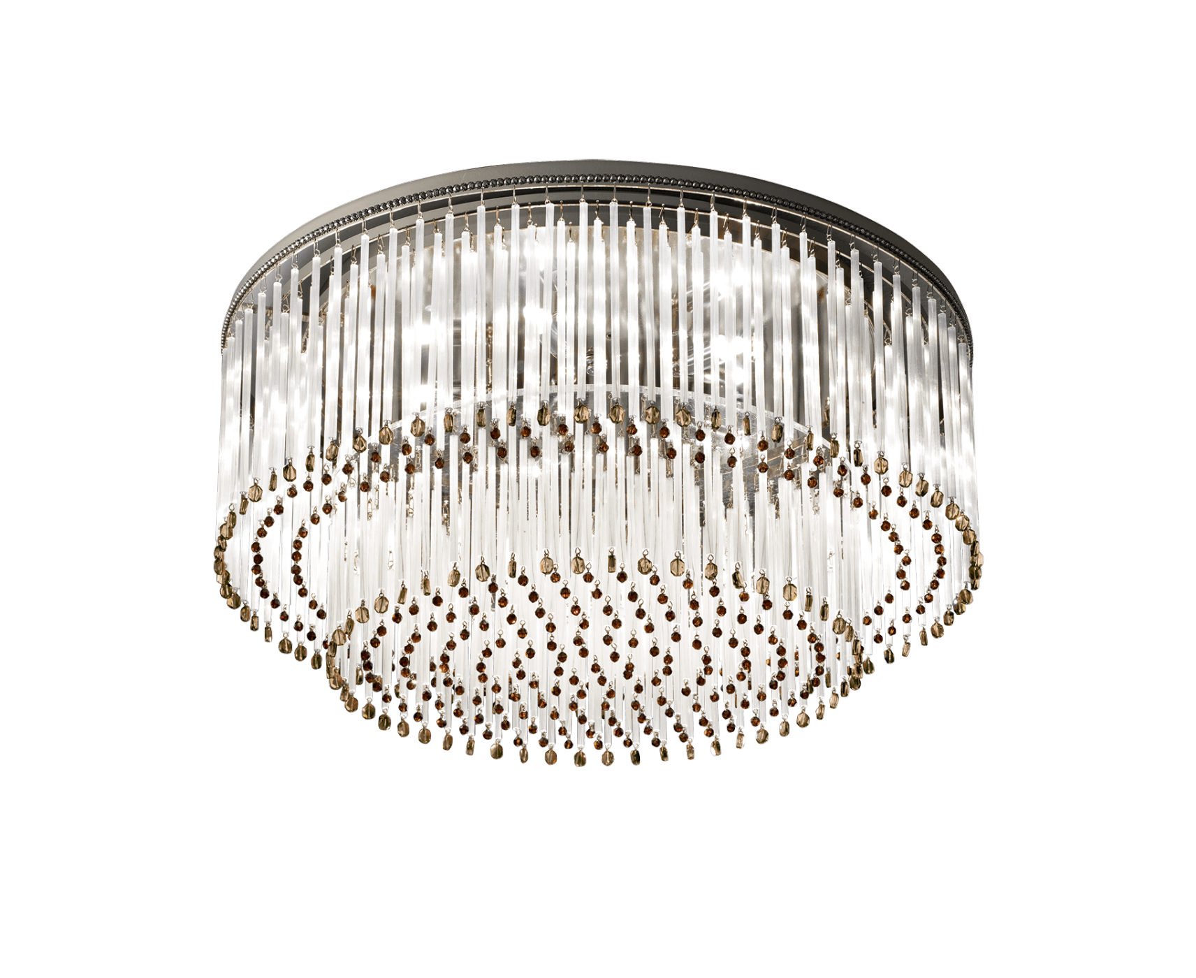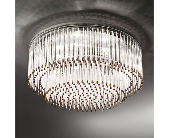 Потолочная лампа из металла с хромированной отделкой, изготовленная из стеклянной соломки и цветных деталей Swarovski Elements. Доступны в разных размерах. Коллекция Opera Classic.