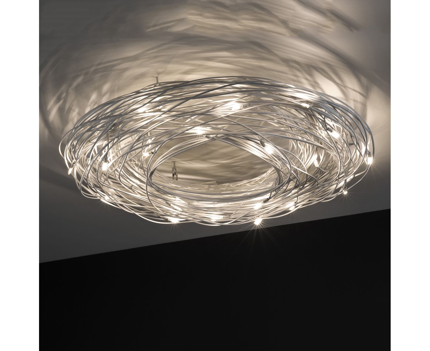 Этот проект извне представляет философию Hand-Made. Алюминиевая проволока, отлитая в неправильную форму, помечается, избегая точных узоров и акцентируя внимание на инновационной концепции LIGHTING ART MOOD. Альтернативой традиционной точкой света является этот светильник «Confusione», который в своем названии содержит всю свою красоту. Различные размеры из-за различных требований к дизайну интерьера, его отделочный характер - цвет «натуральный алюминий», но это ценится дизайнерами интерьера и в полной белой версии. Освещенный с помощью Knikerboker светодиодных ламп, он создает совершенно особый свет.