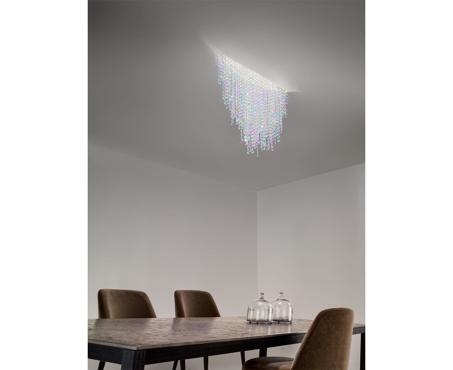 Этот инновационный светильник из хрусталя – настоящий источник вдохновения и идеальной оптической иллюзии: Создавая удивительную атмосферу, яркий поток сверкающих кристаллов, кажется, так и хлынет прямо с потолка или стены. FONTE DI LUCE наполняет любую комнату настоящим очарованием.