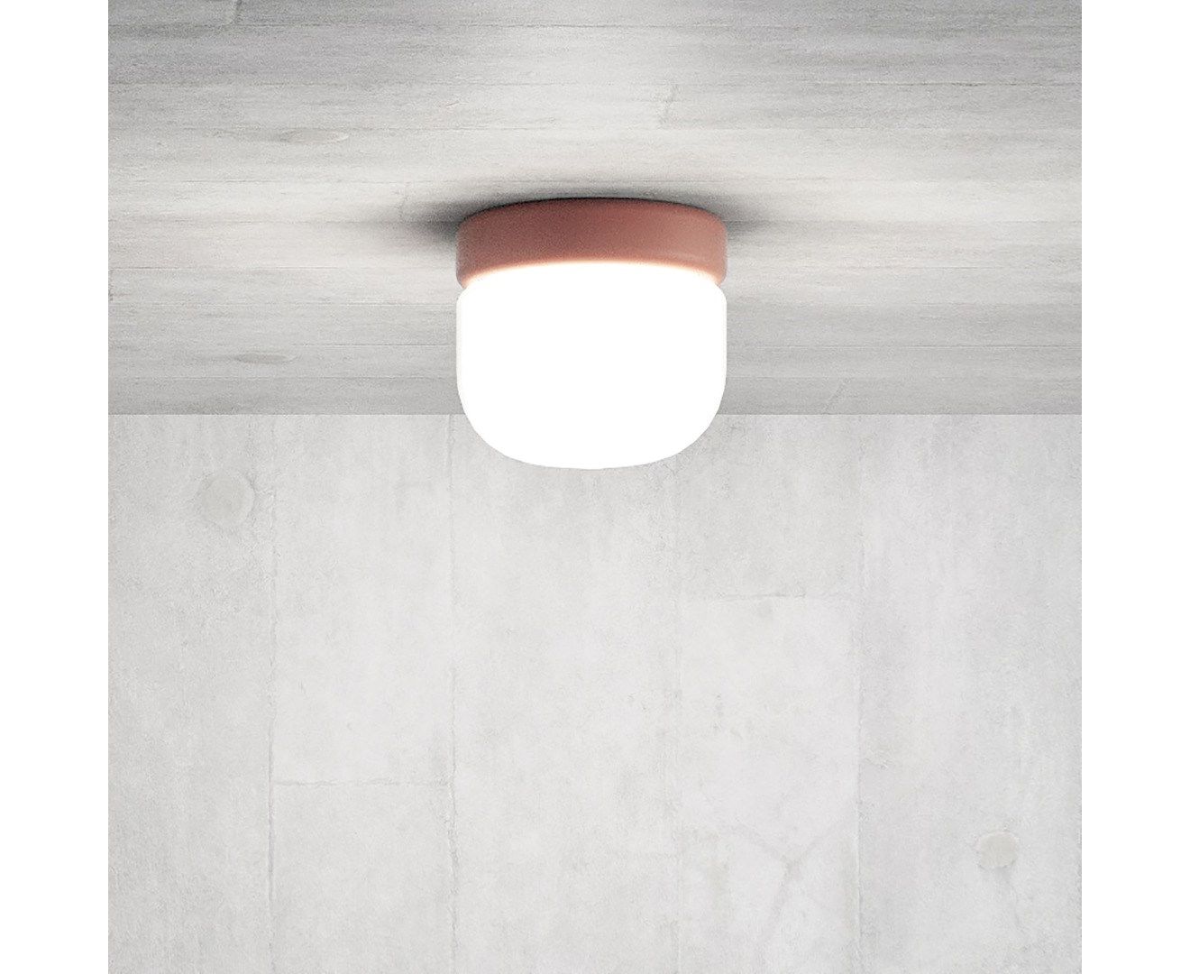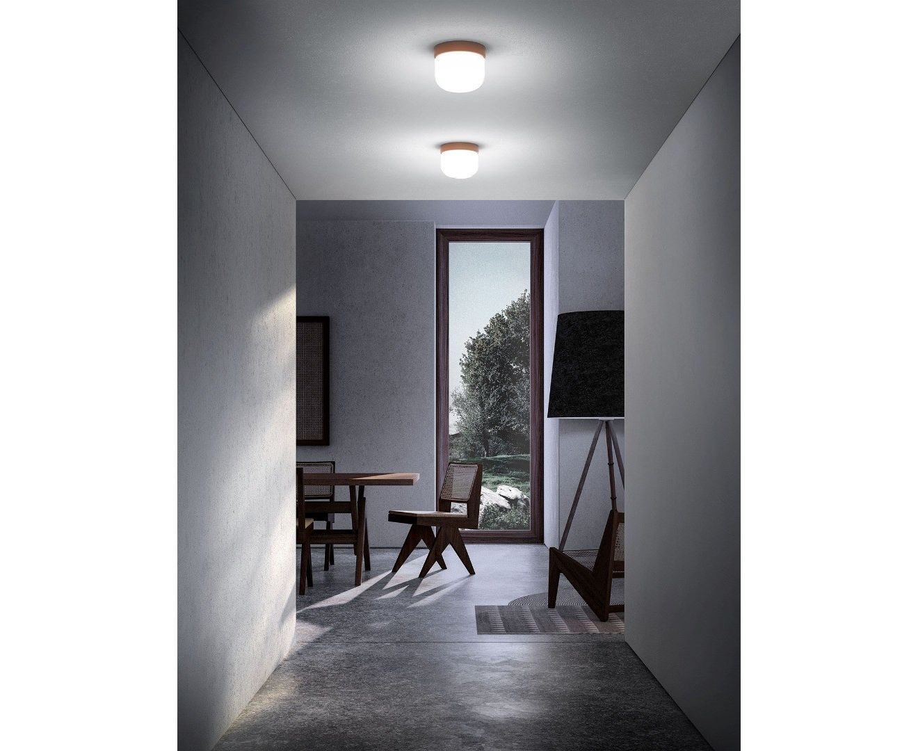 Потолочный светильник рассеянного света. Конструкция из латуни, белого и черного лакированного алюминия. Рассеиватель из дутого опалового белого стекла.