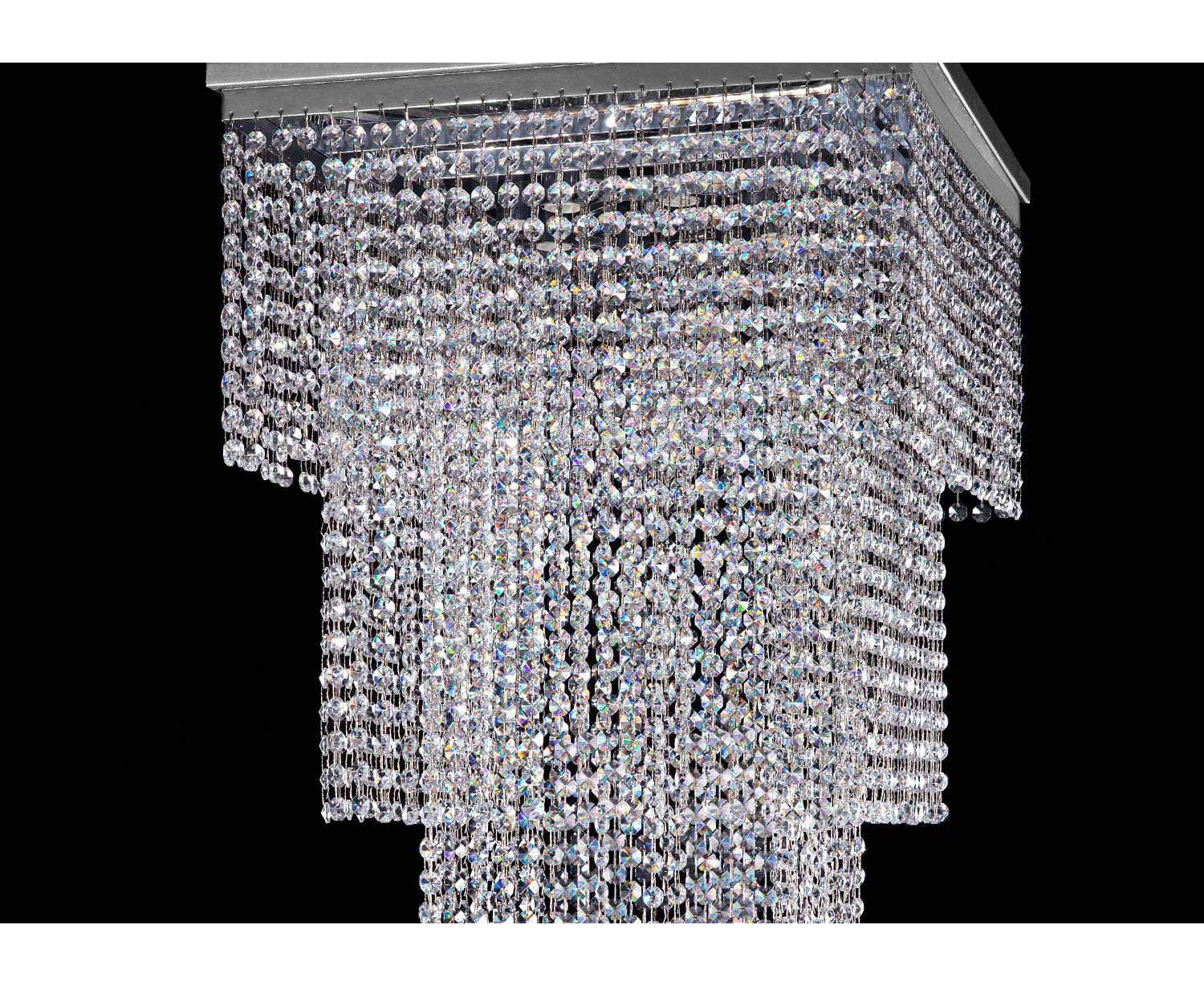 Хрустальная люстра Stratus R является вариацией коллекции Stratus, разница между двумя коллекциями заключается в форме, которая является прямоугольной или квадратной в Stratus R. Это чрезвычайно разносторонняя коллекция, и металлическая структура, и украшения могут быть адаптированы под любой вкус клиента.